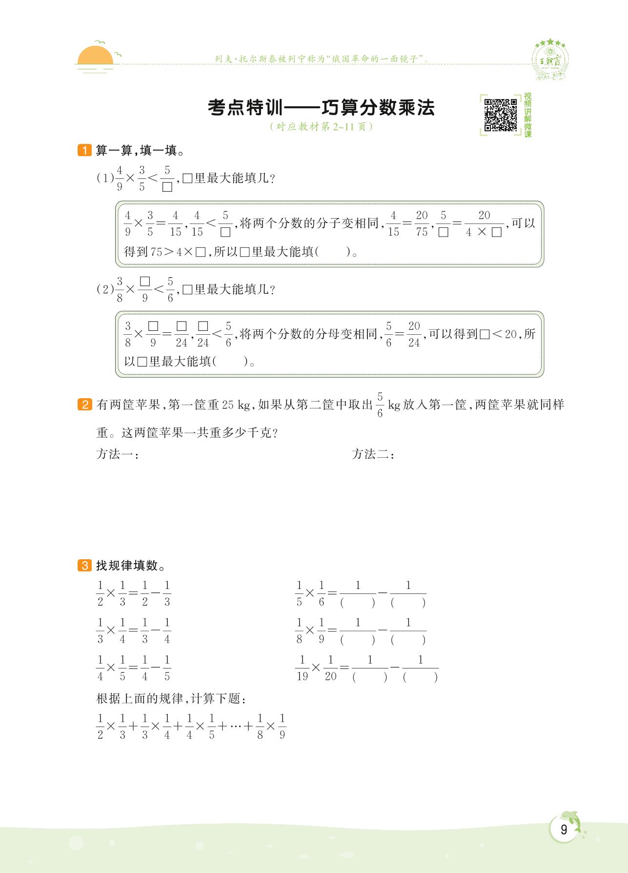2022上册六年级数学人教版 第一单元 分数乘法——考点特训 巧算分数乘法