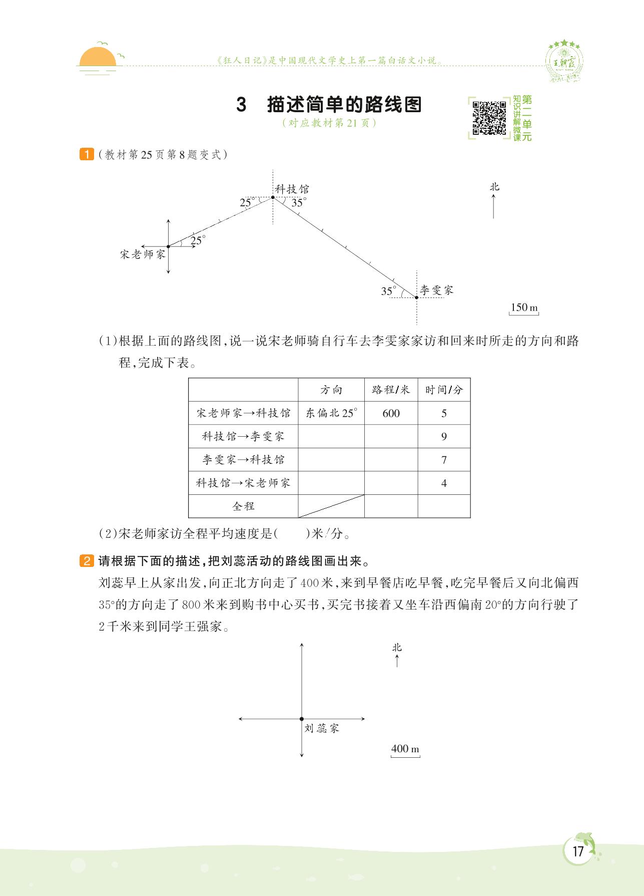 2022上册六年级数学人教版 第二单元 位置与方向(二)——3 描述简单的路线图