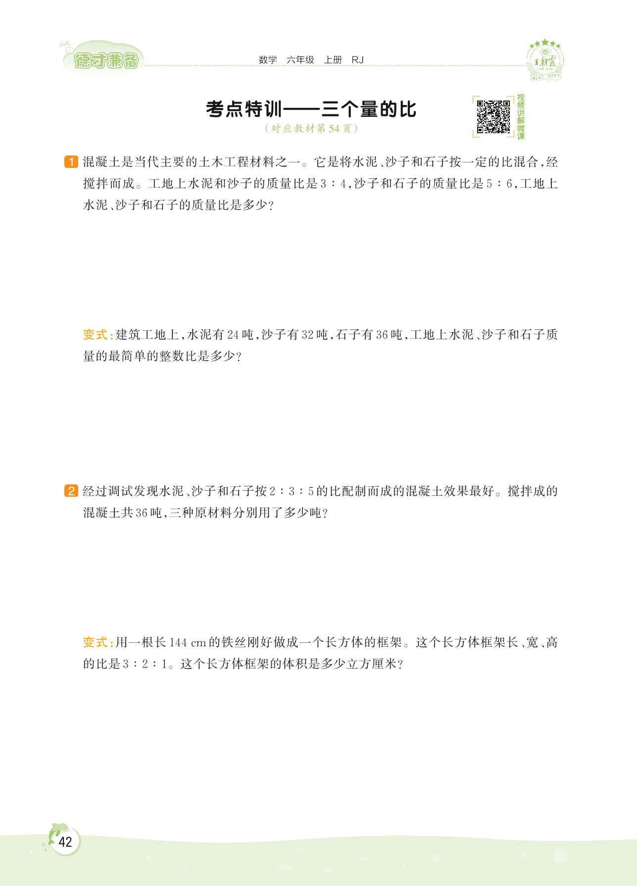 2022上册六年级数学人教版 第四单元 比——考点特训 三个量的比