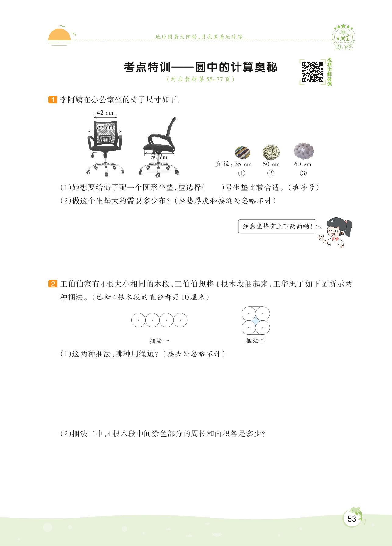 2022上册六年级数学人教版 第五单元 圆——考点特训 圆中的计算奥秘