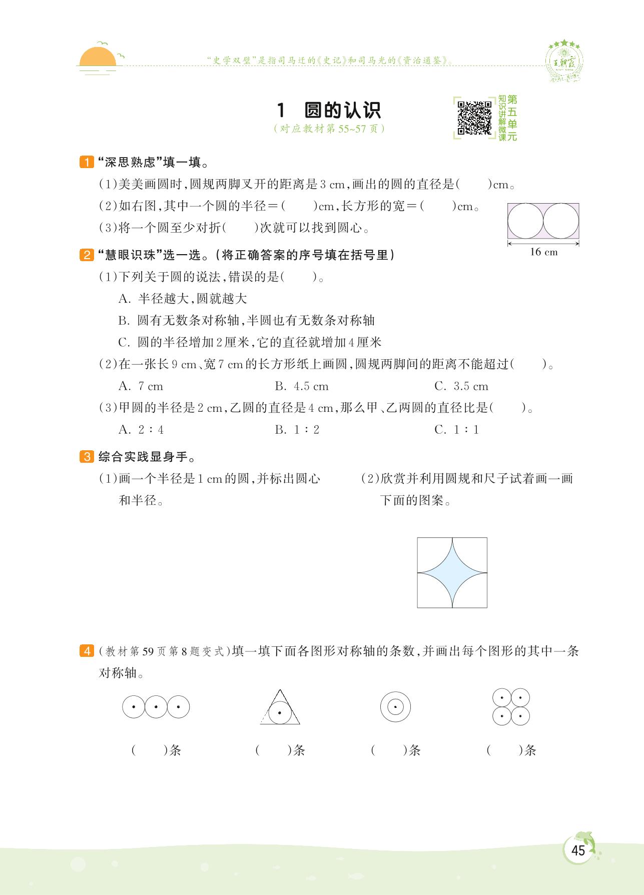 2022上册六年级数学人教版 第五单元 圆——1 圆的认识