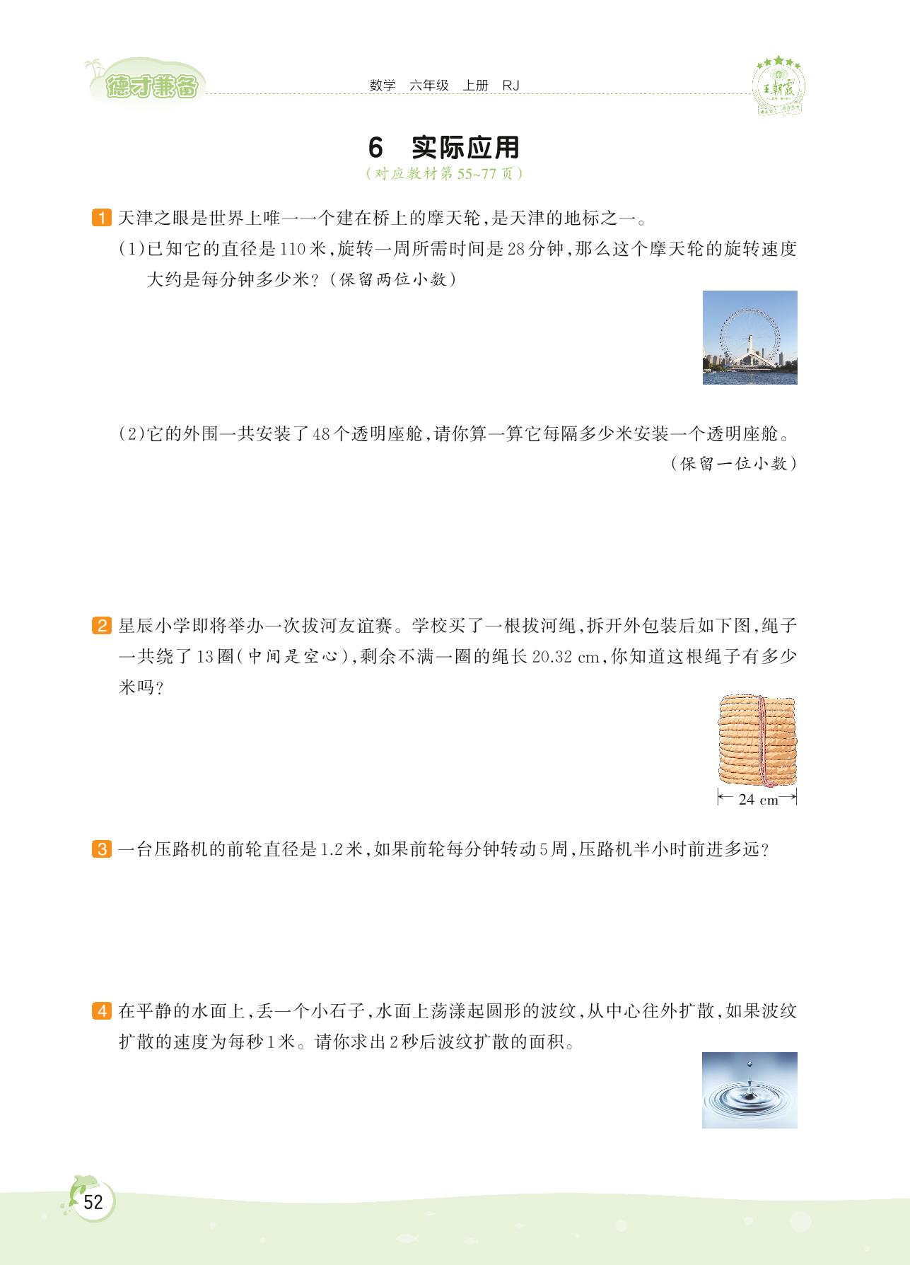 2022上册六年级数学人教版 第五单元 圆——6 实际应用