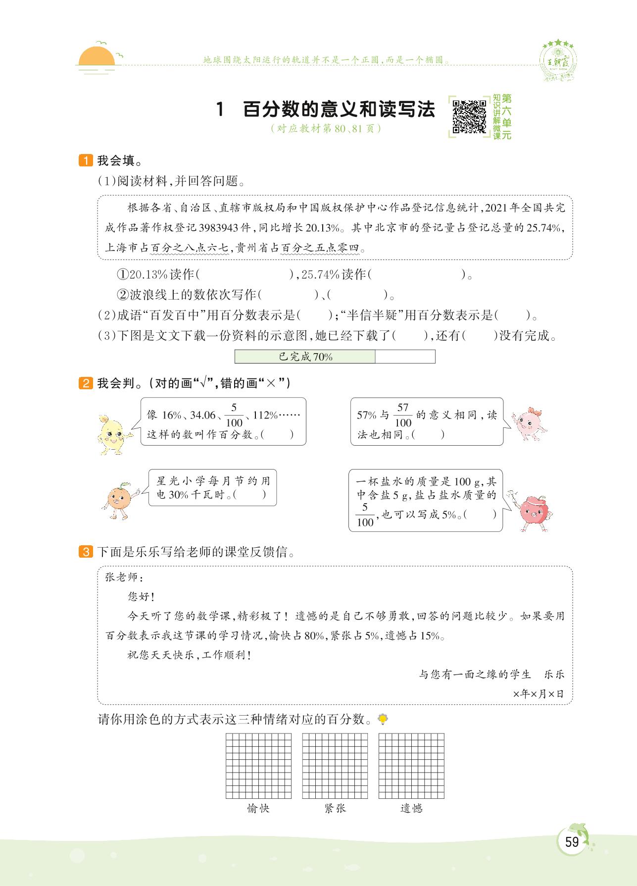 2022上册六年级数学人教版 第六单元 百分数(一)——1 百分数的意义和读写法