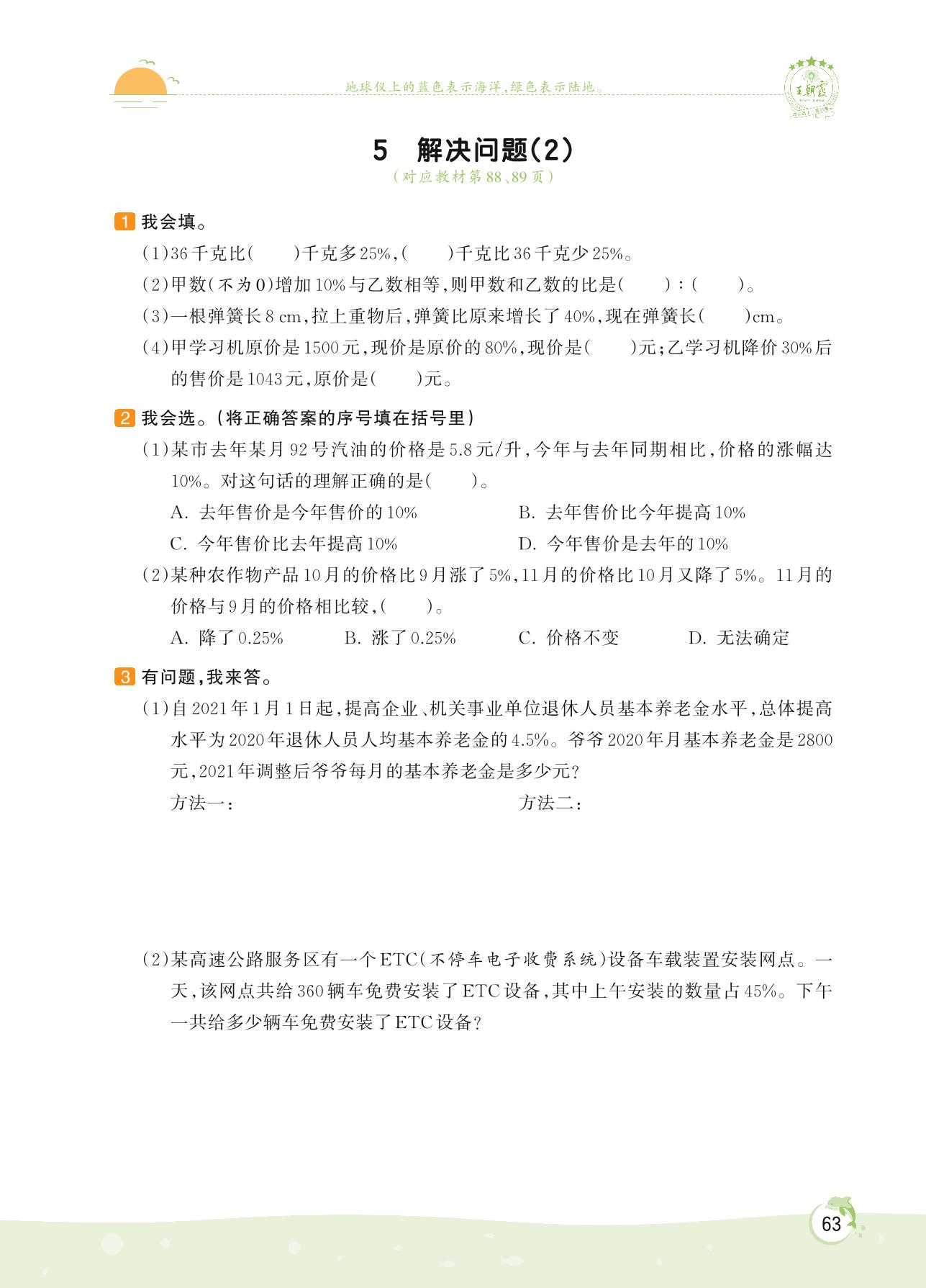 2022上册六年级数学人教版 第六单元 百分数(一)——5 解决问题(2)