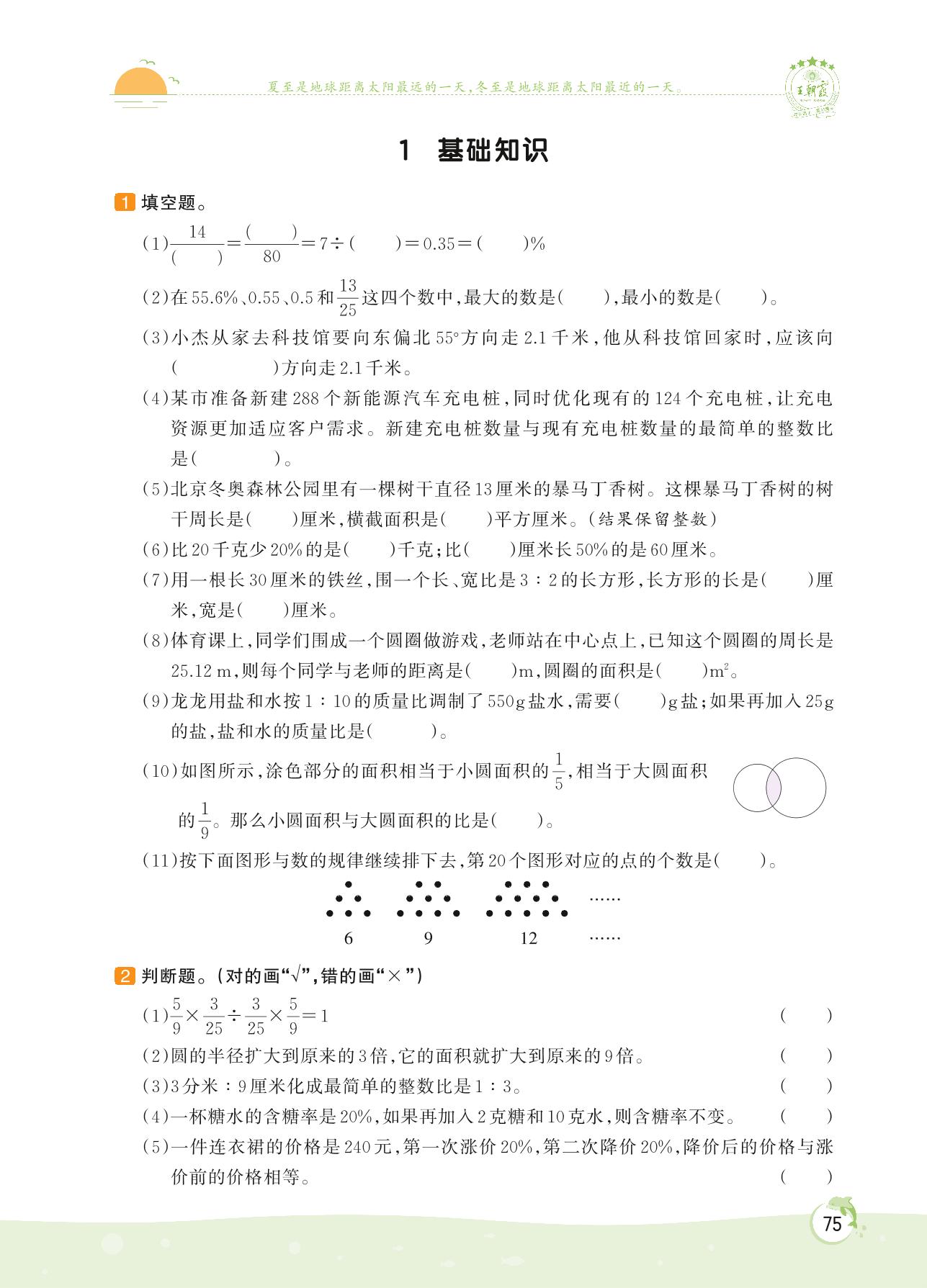 2022上册六年级数学人教版 第九单元 总复习——1 基础知识