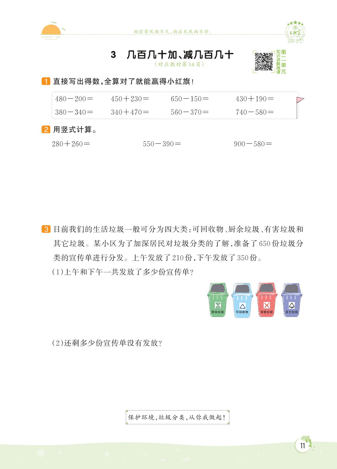 2022上册三年级数学人教版 第二单元 万以内的加法和减法(一)——3 几百几十加、减几百几十