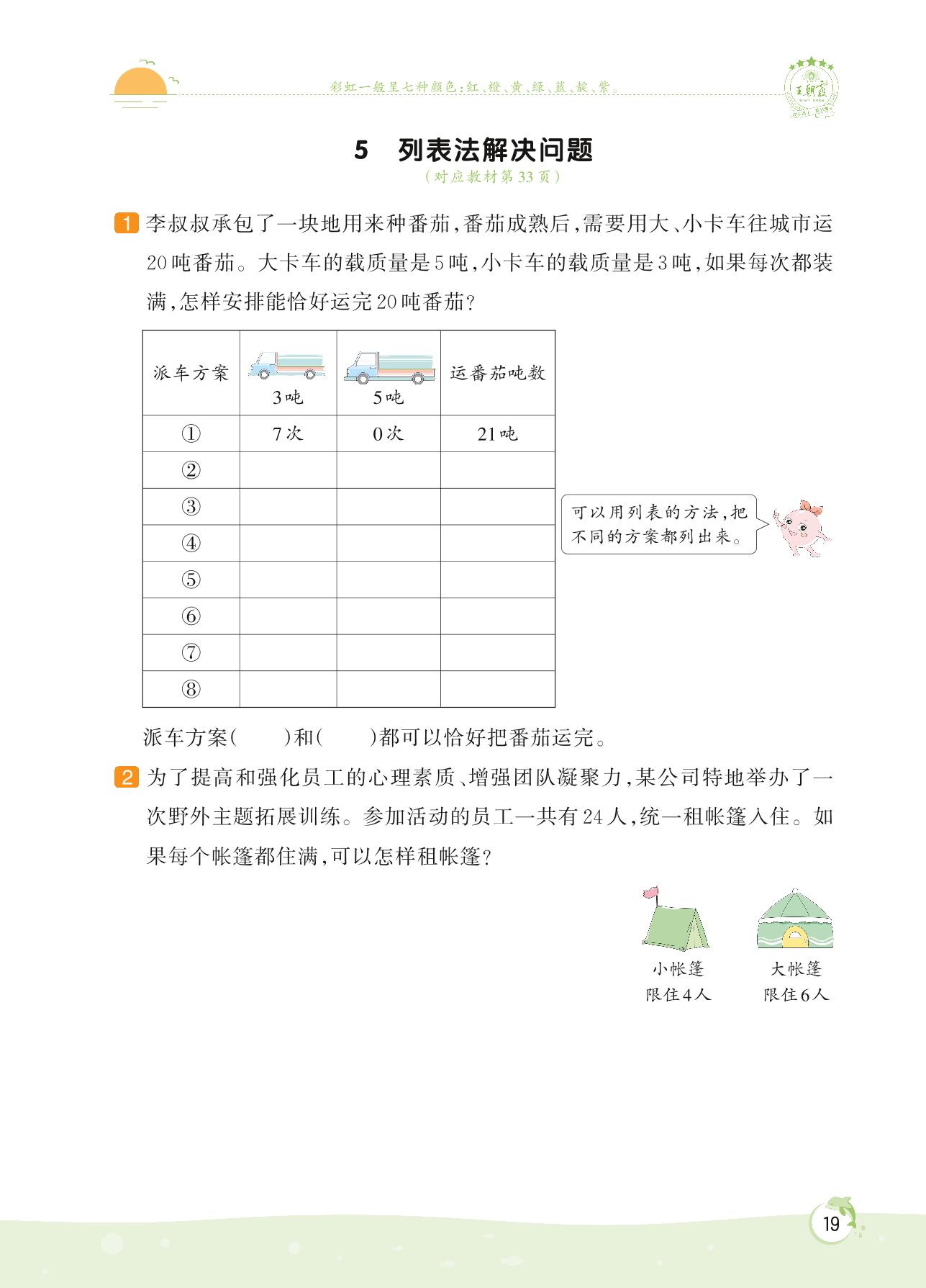 2022上册三年级数学人教版 第三单元 测量——5 列表法解决问题