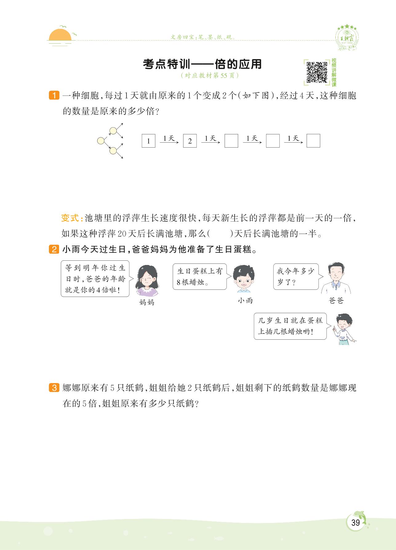 2022上册三年级数学人教版 第五单元 倍的认识——考点特训 倍的应用