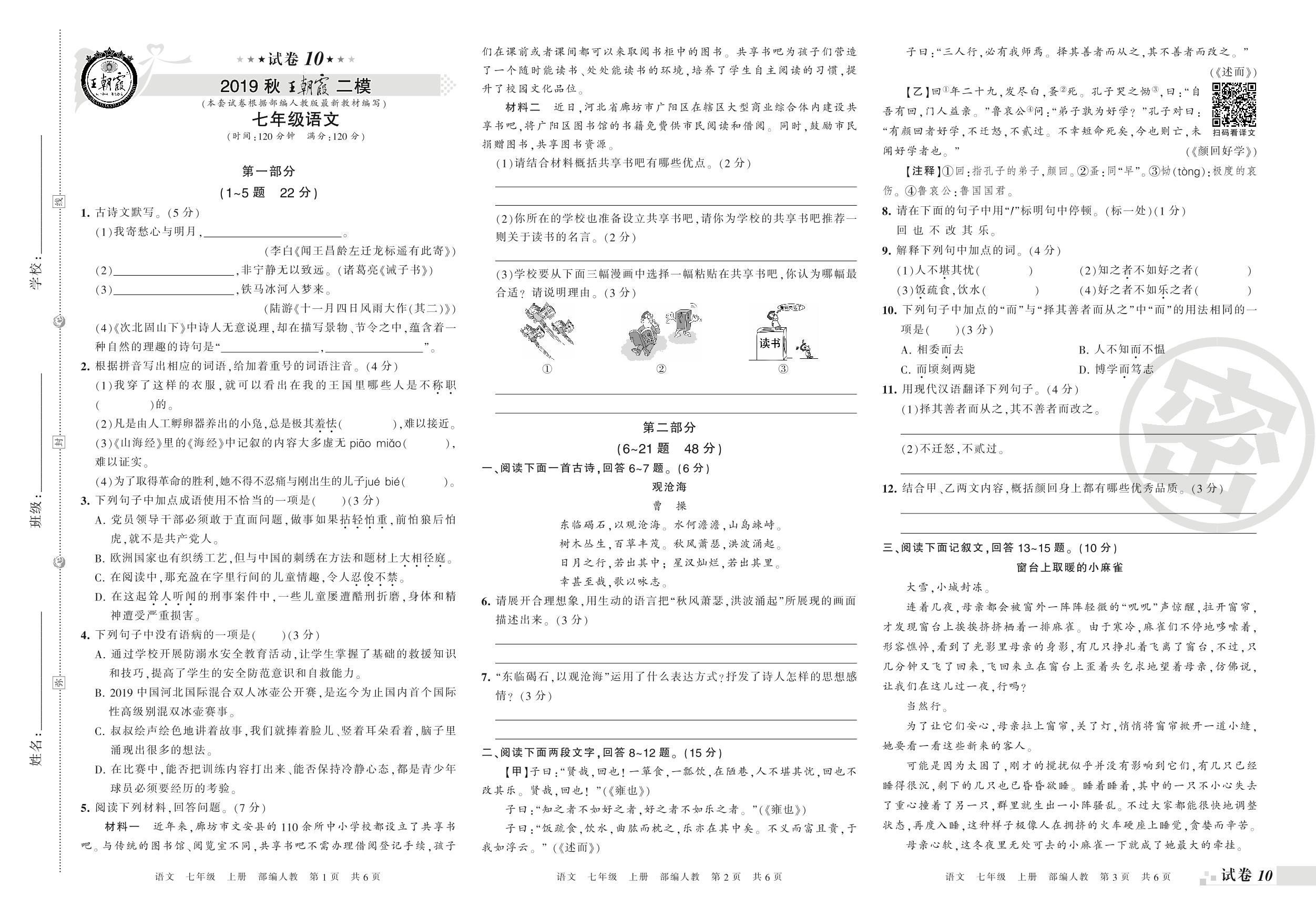 王朝霞期末模拟卷七年级上册语文(人教版)_R21080240559【10】