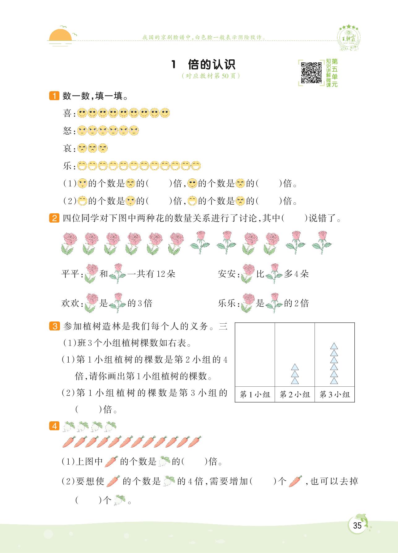 2022上册三年级数学人教版 第五单元 倍的认识——1 倍的认识