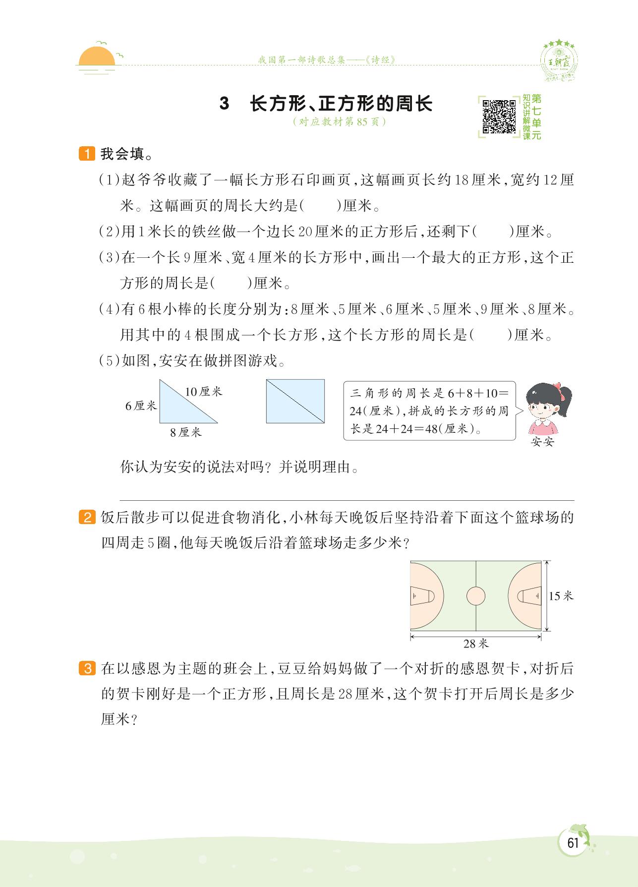 2022上册三年级数学人教版 第七单元 长方形和正方形——3 长方形、正方形的周长