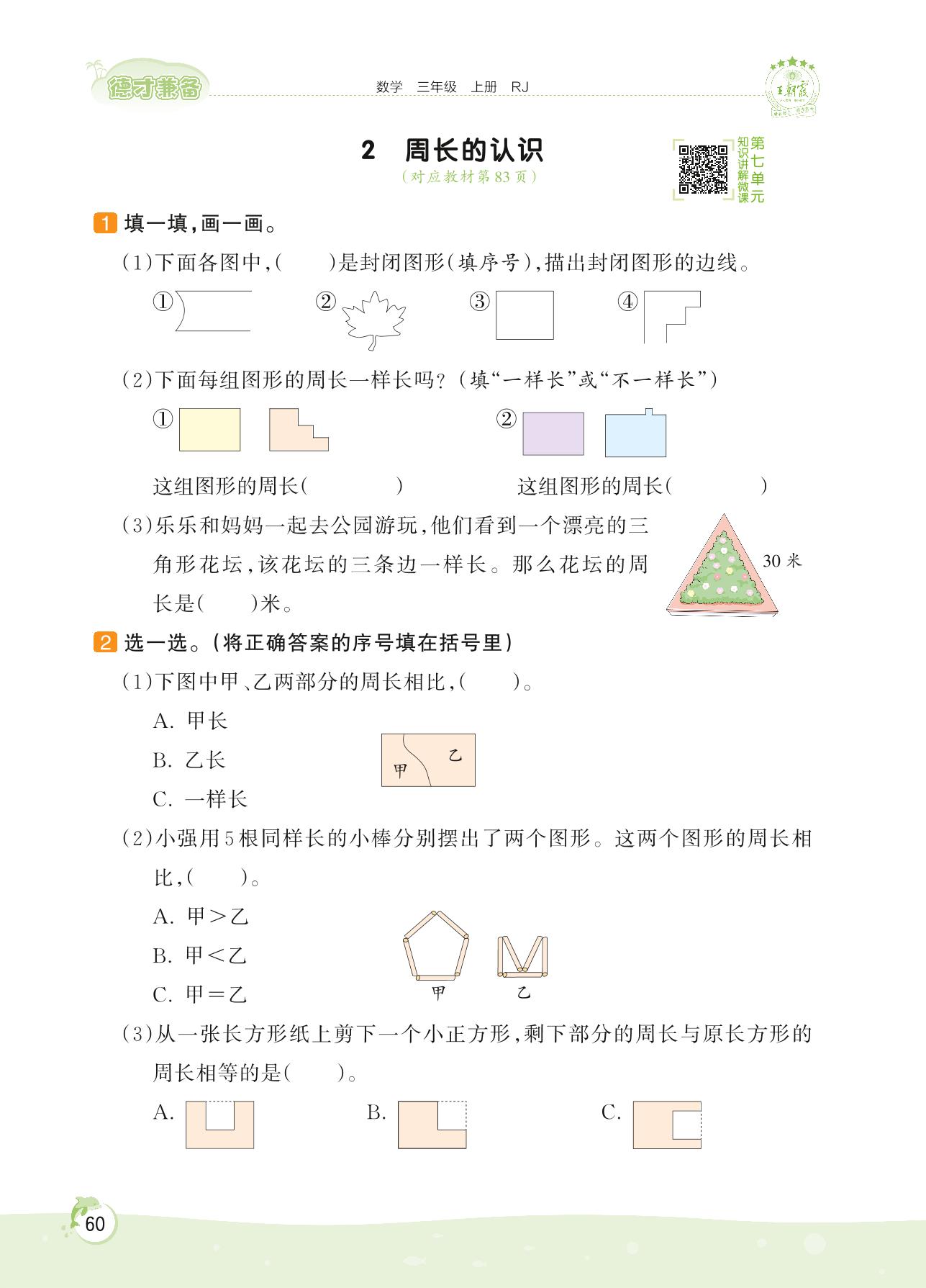 2022上册三年级数学人教版 第七单元 长方形和正方形——2 周长的认识