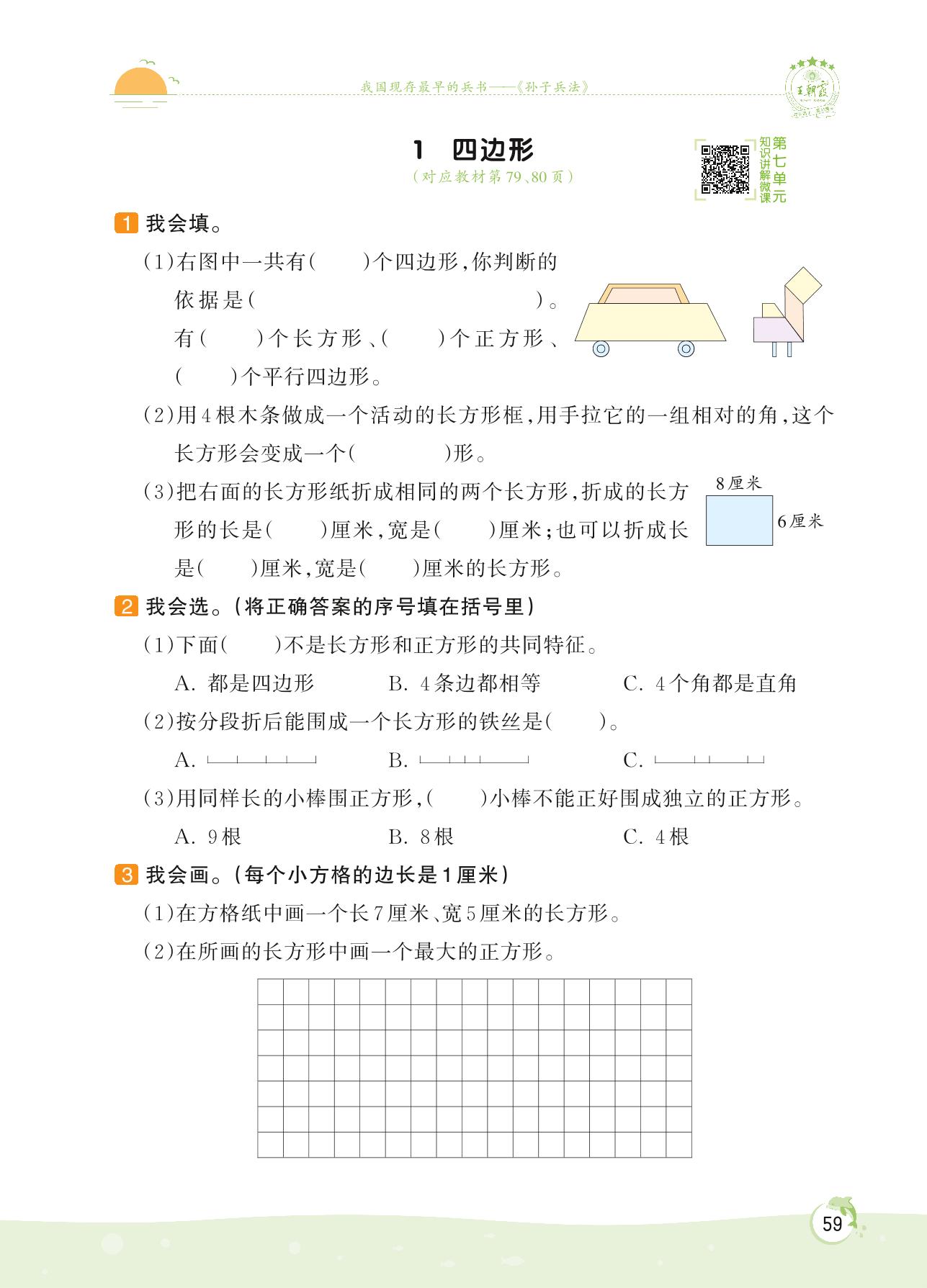 2022上册三年级数学人教版 第七单元 长方形和正方形——1 四边形
