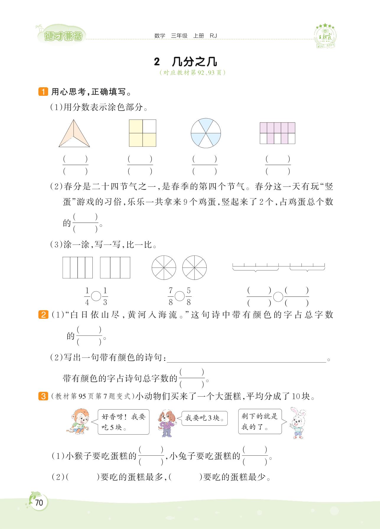 2022上册三年级数学人教版 第八单元 分数的初步认识——2 几分之几