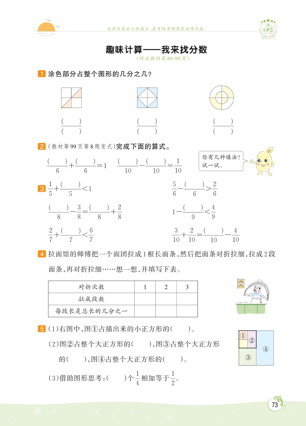 2022上册三年级数学人教版 第八单元 分数的初步认识——趣味计算 我来找分数