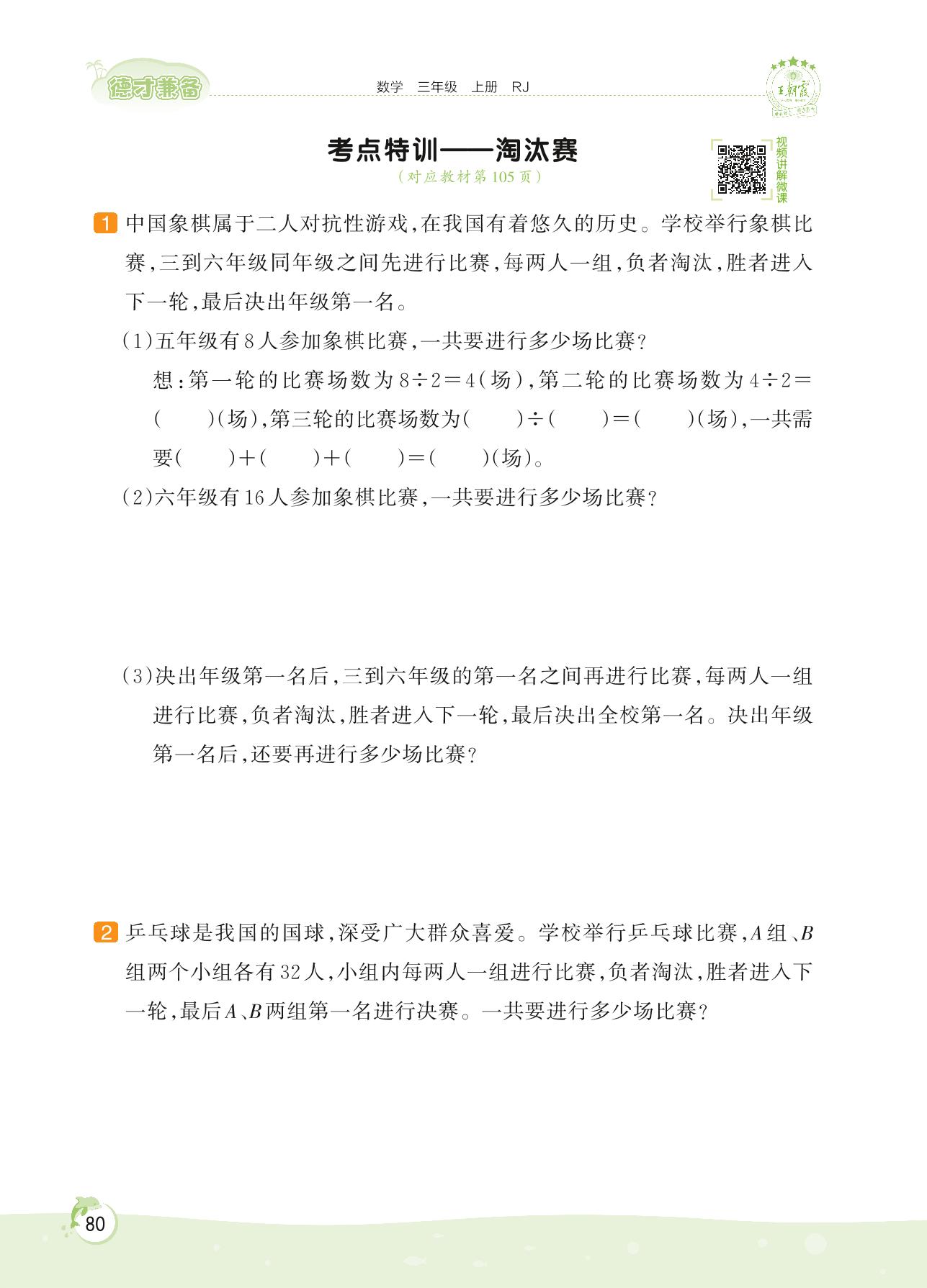 2022上册三年级数学人教版 第九单元 数学广角——集合——考点特训 淘汰赛