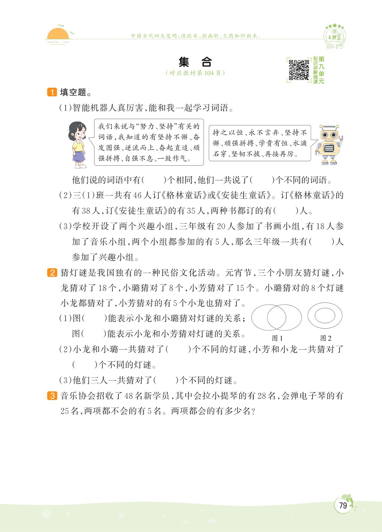 2022上册三年级数学人教版 第九单元 数学广角——集合——集合