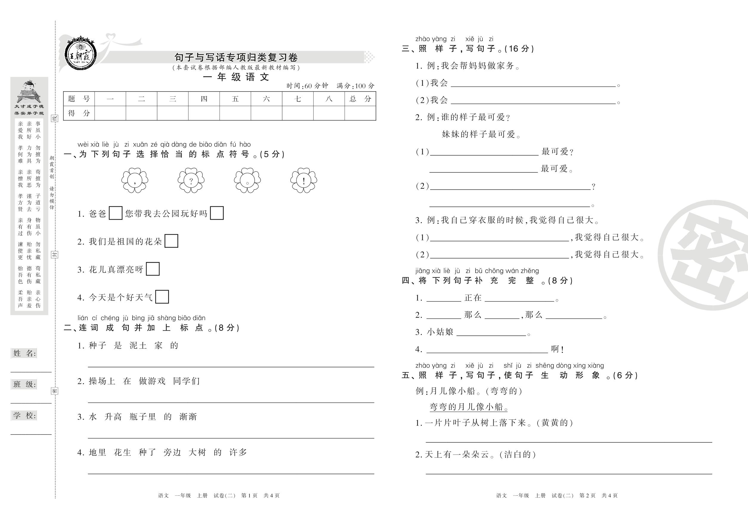 王朝霞期末专项卷一年级上册语文(人教版)_R210731184117【2】