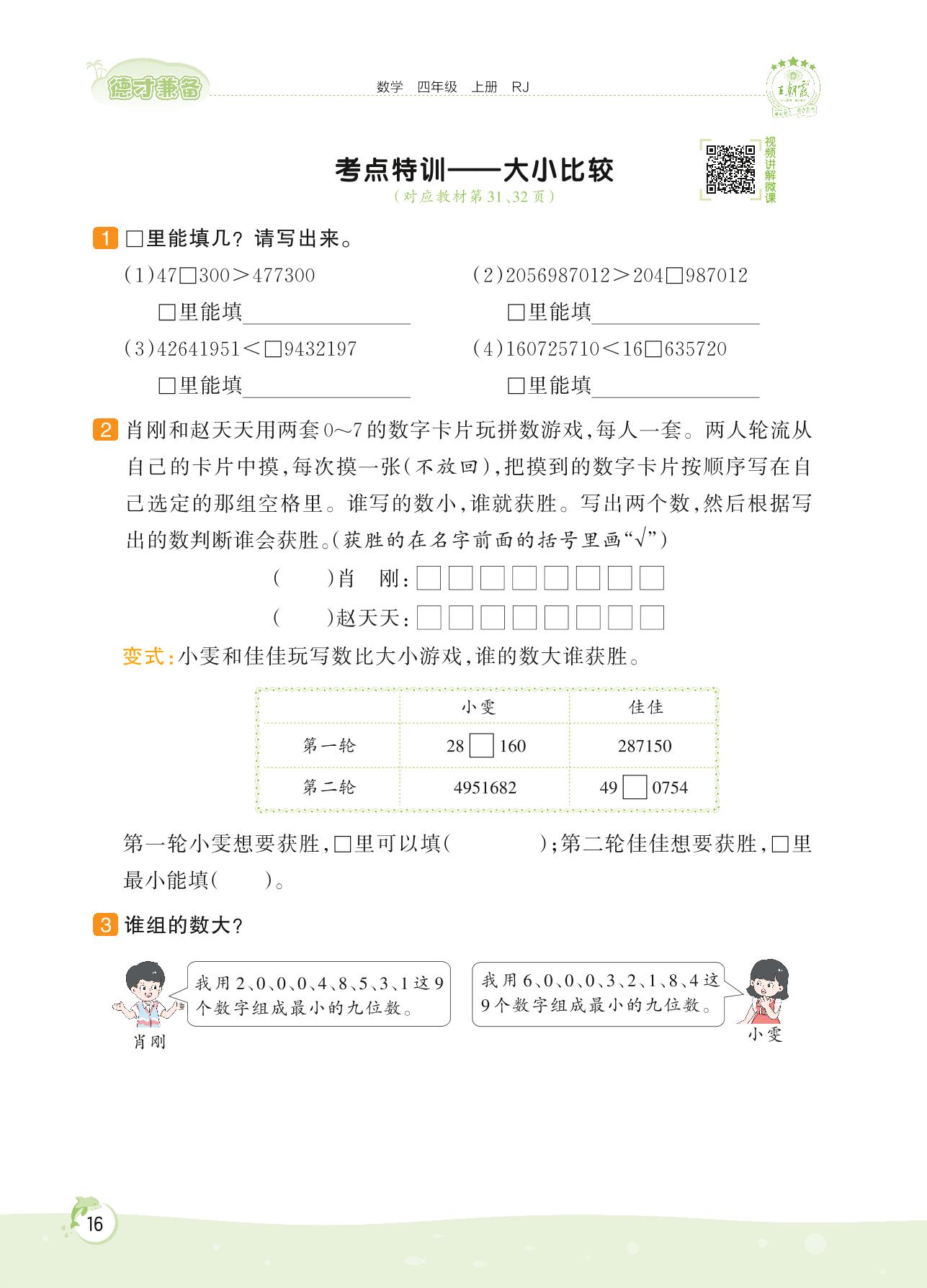 2022上册四年级数学人教版 第一单元 大数的认识——考点特训 大小比较