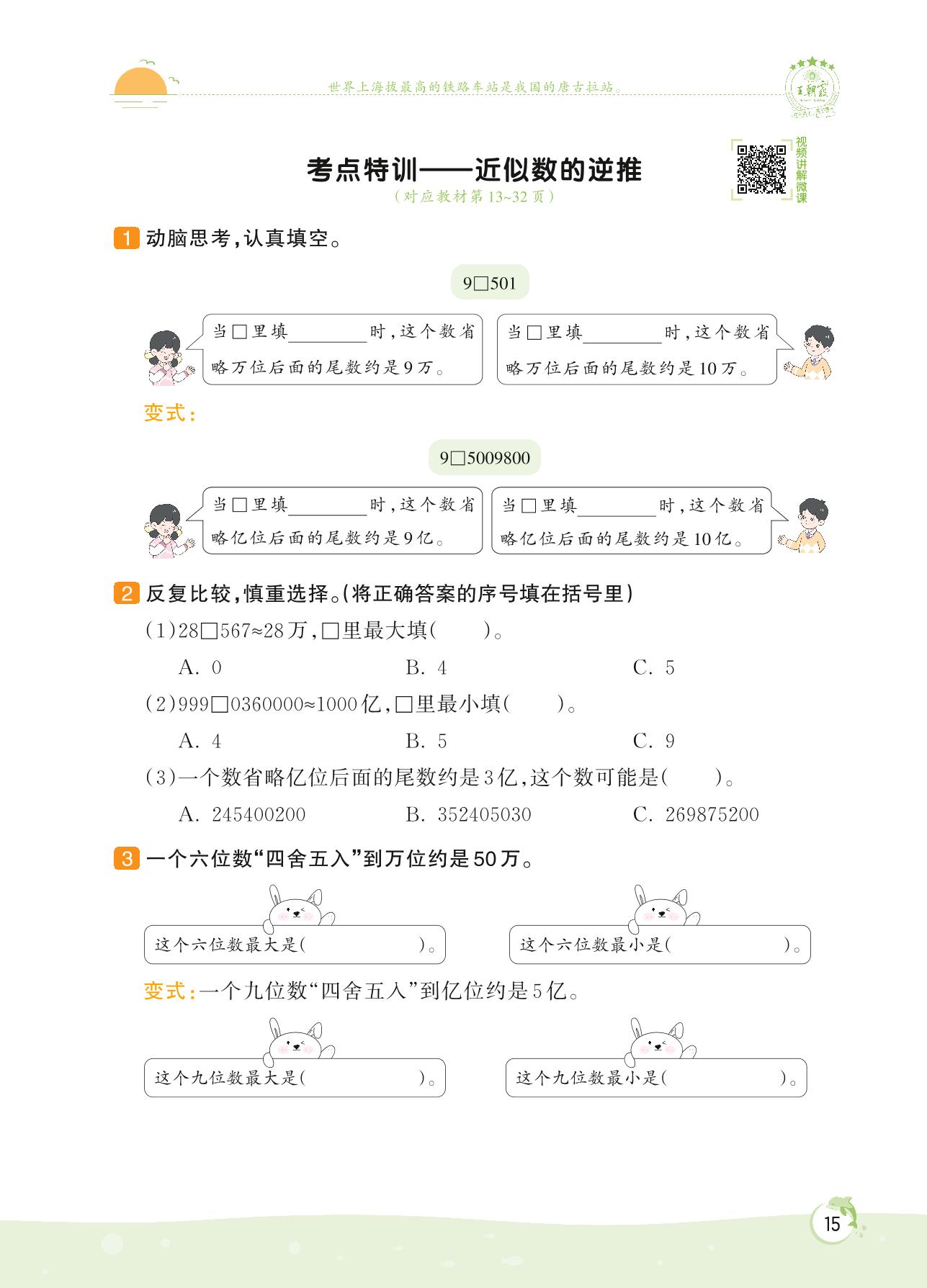 2022上册四年级数学人教版 第一单元 大数的认识——考点特训 近似数的逆推