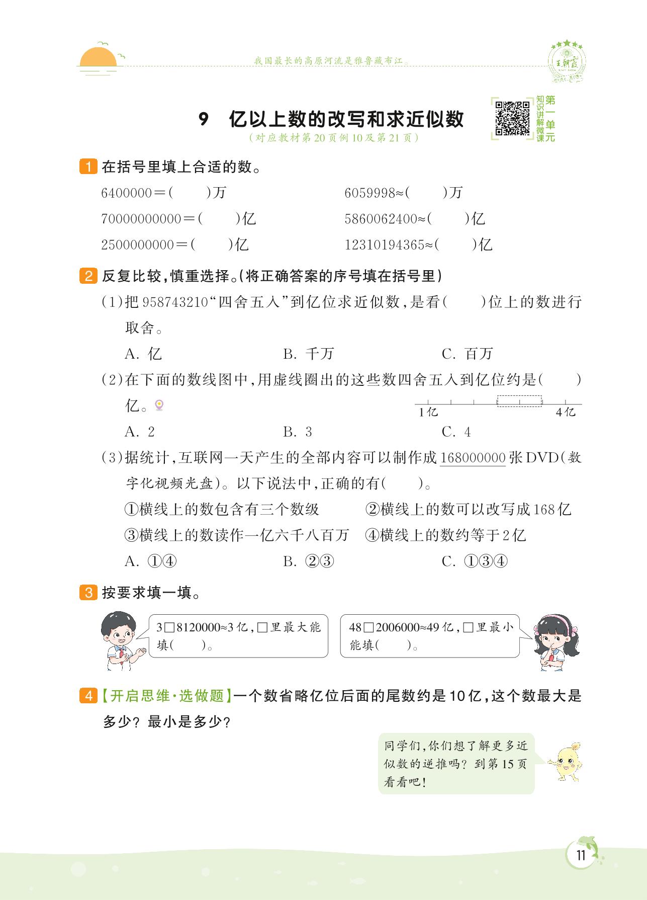 2022上册四年级数学人教版 第一单元 大数的认识——9 亿以上数的改写和求近似数