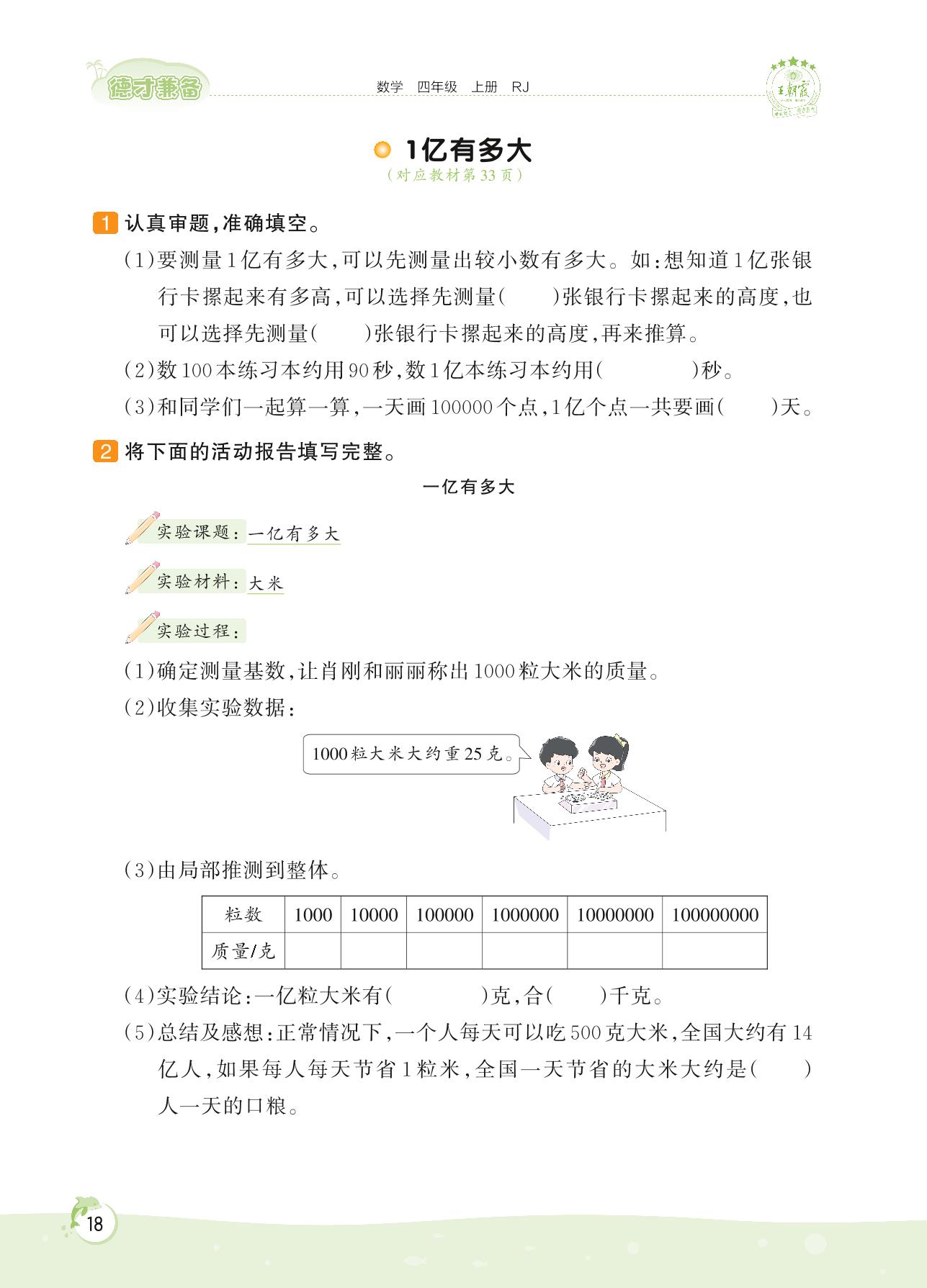 2022上册四年级数学人教版 第一单元 大数的认识——1亿有多大
