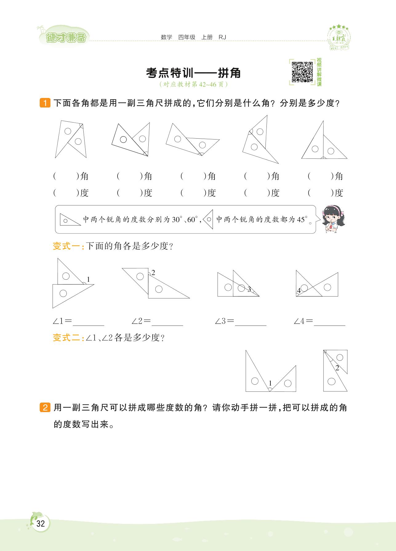 2022上册四年级数学人教版 第三单元 角的度量——考点特训 拼角