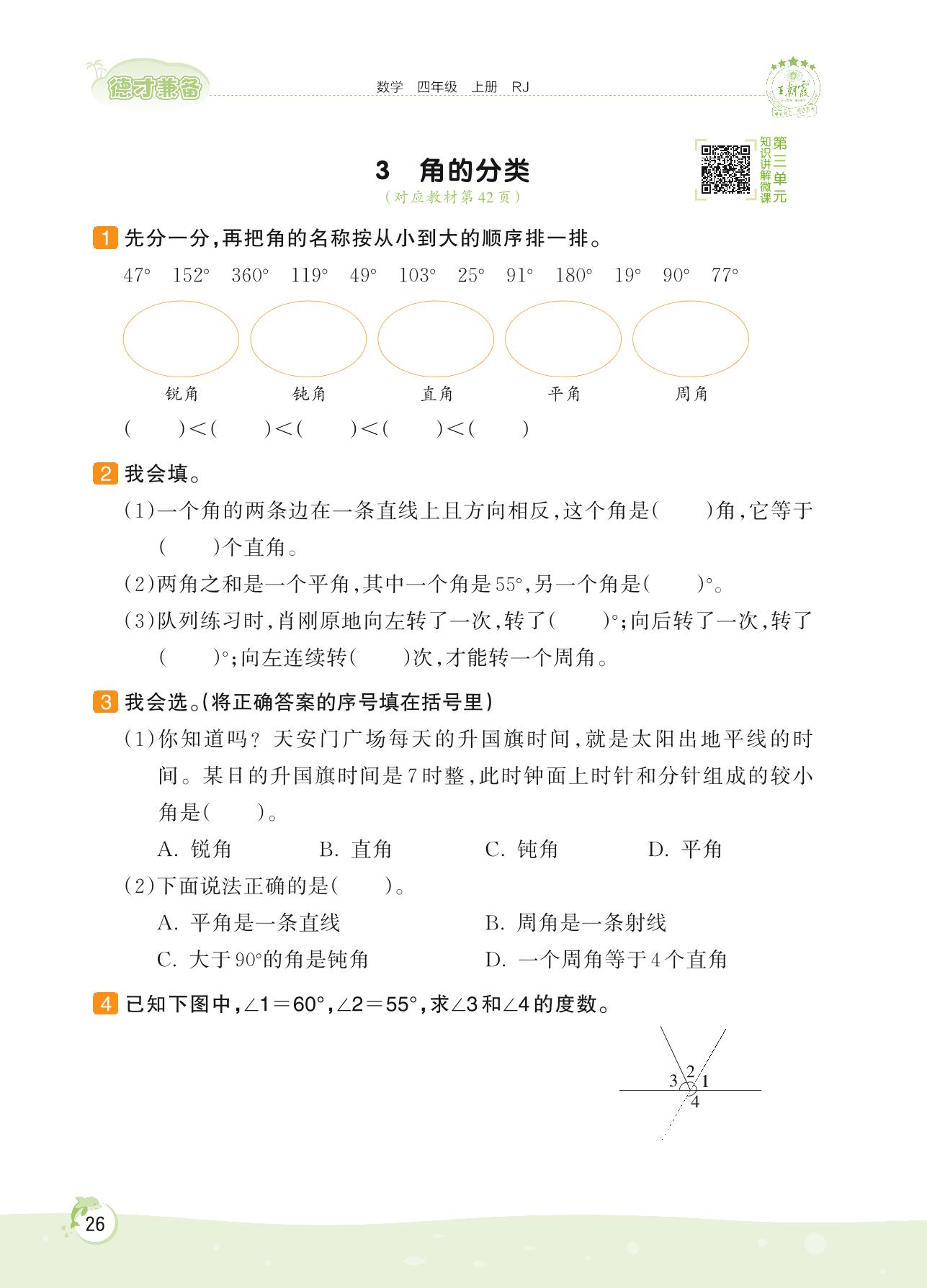 2022上册四年级数学人教版 第三单元 角的度量——3 角的分类