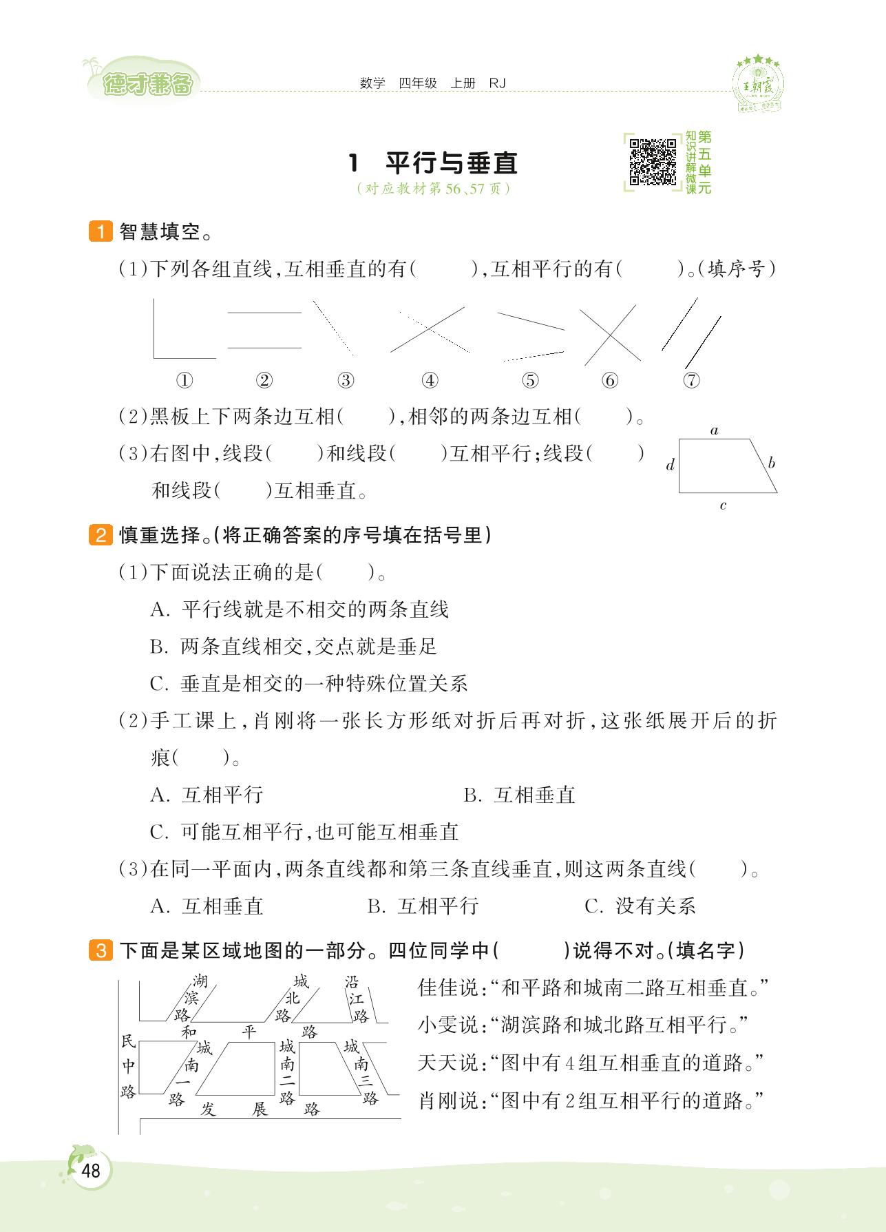 2022上册四年级数学人教版 第五单元 平行四边形和梯形——1 平行与垂直
