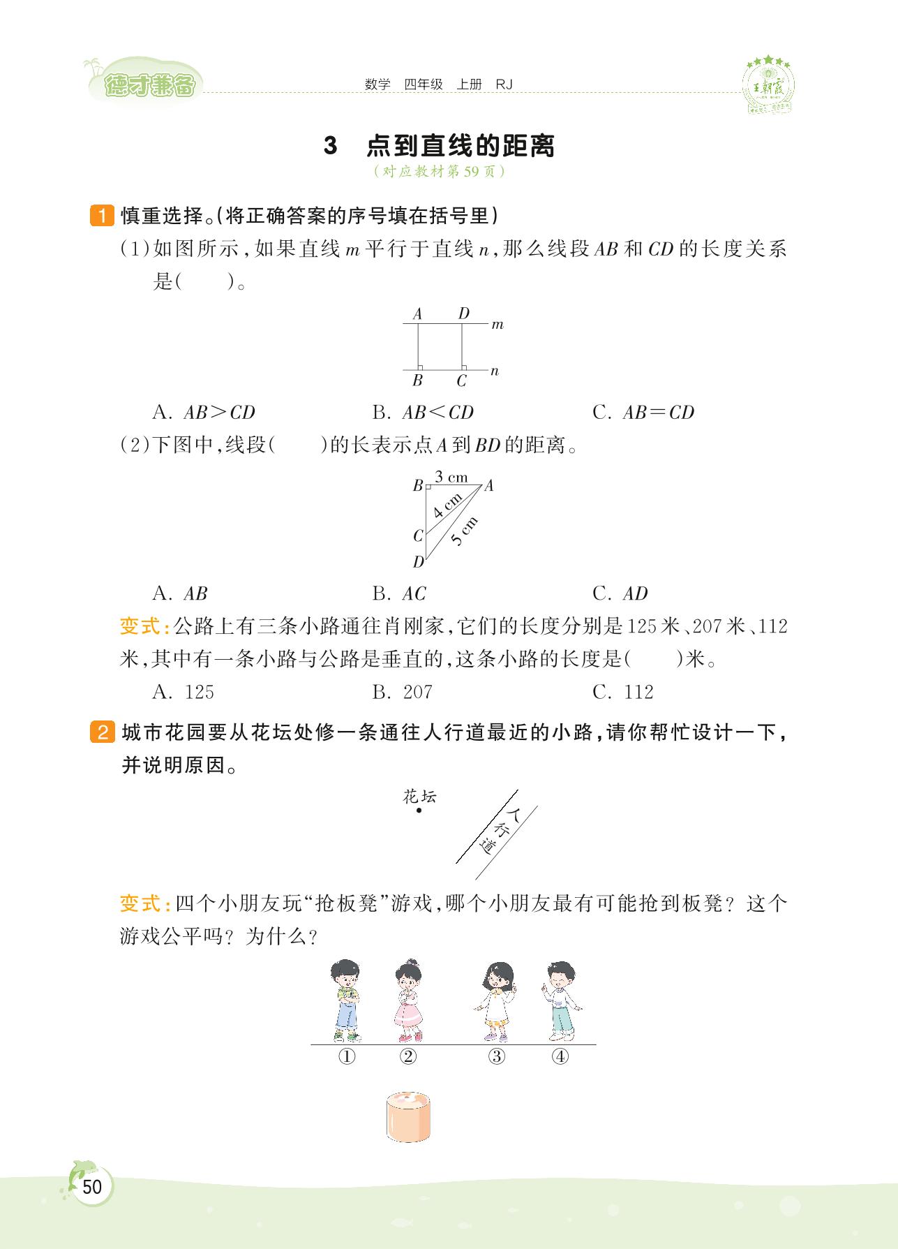 2022上册四年级数学人教版 第五单元 平行四边形和梯形——3 点到直线的距离