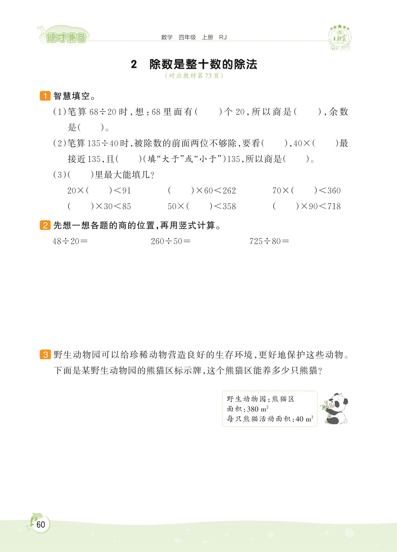2022上册四年级数学人教版 第六单元 除数是两位数的除法——2 除数是整十数的除法