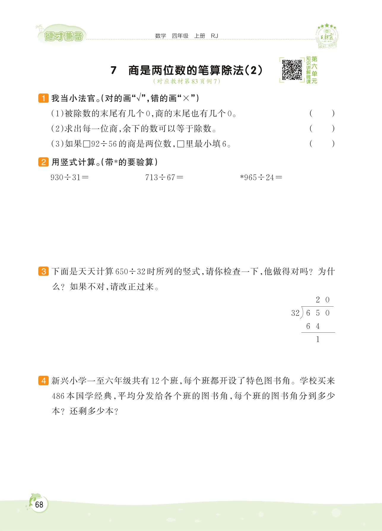 2022上册四年级数学人教版 第六单元 除数是两位数的除法——7 商是两位数的笔算除法(2)