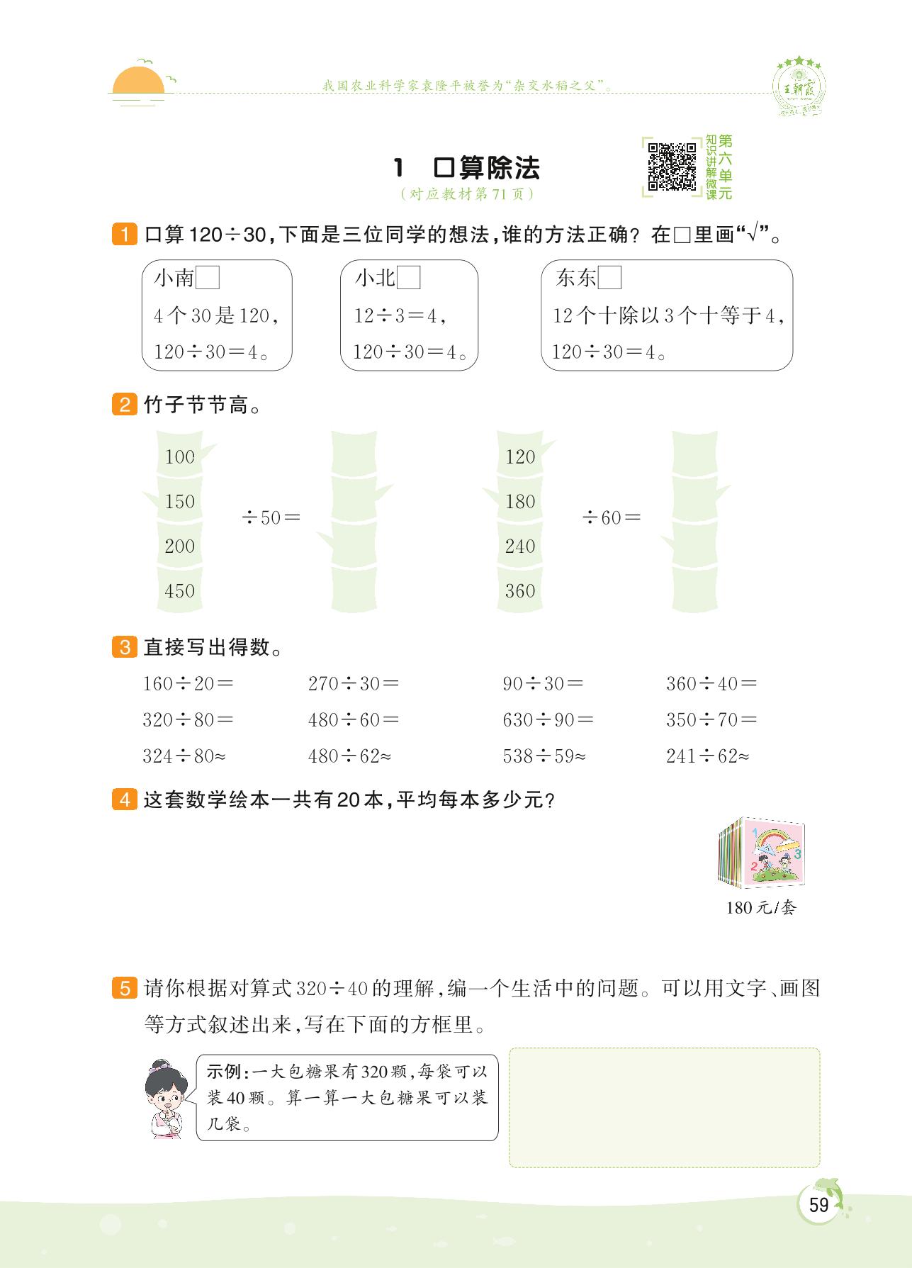 2022上册四年级数学人教版 第六单元 除数是两位数的除法——1 口算除法
