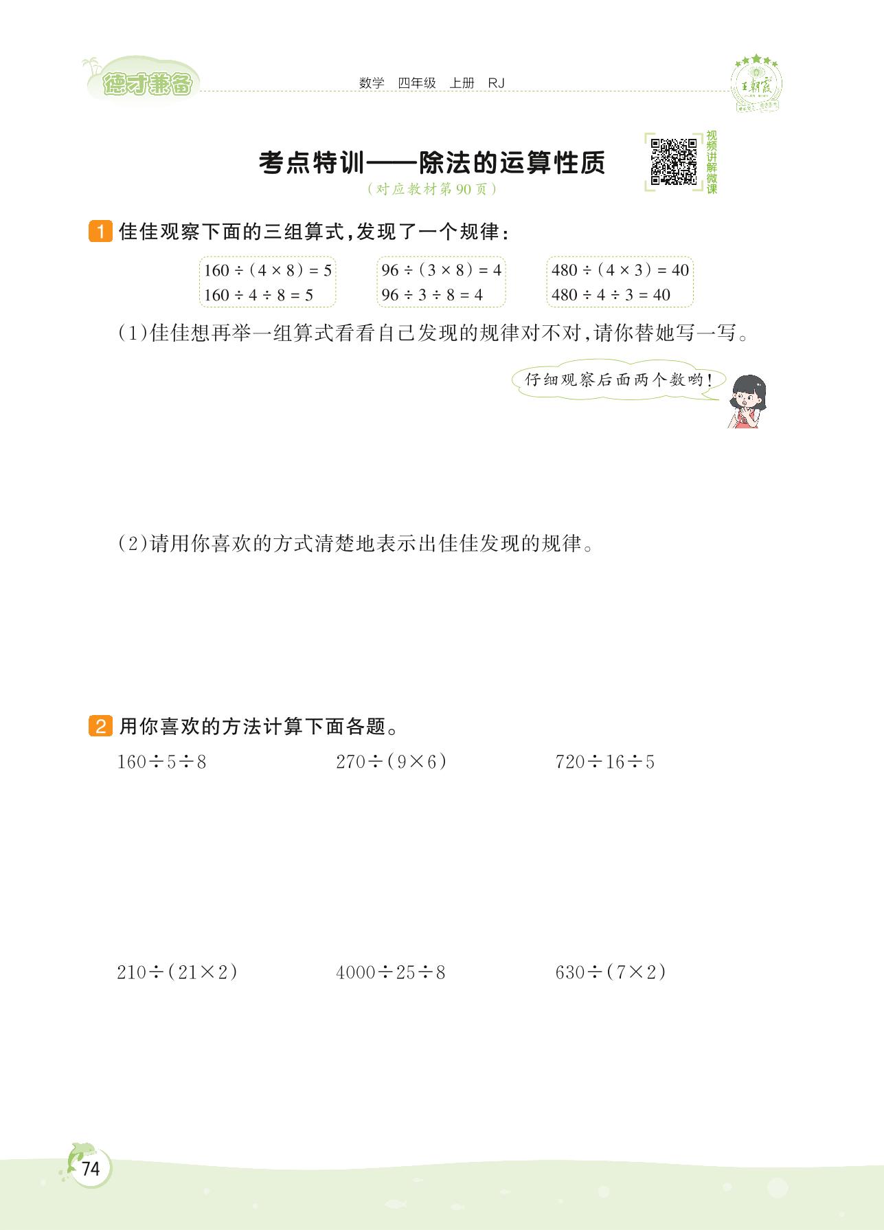 2022上册四年级数学人教版 第六单元 除数是两位数的除法——考点特训 除法的运算性质