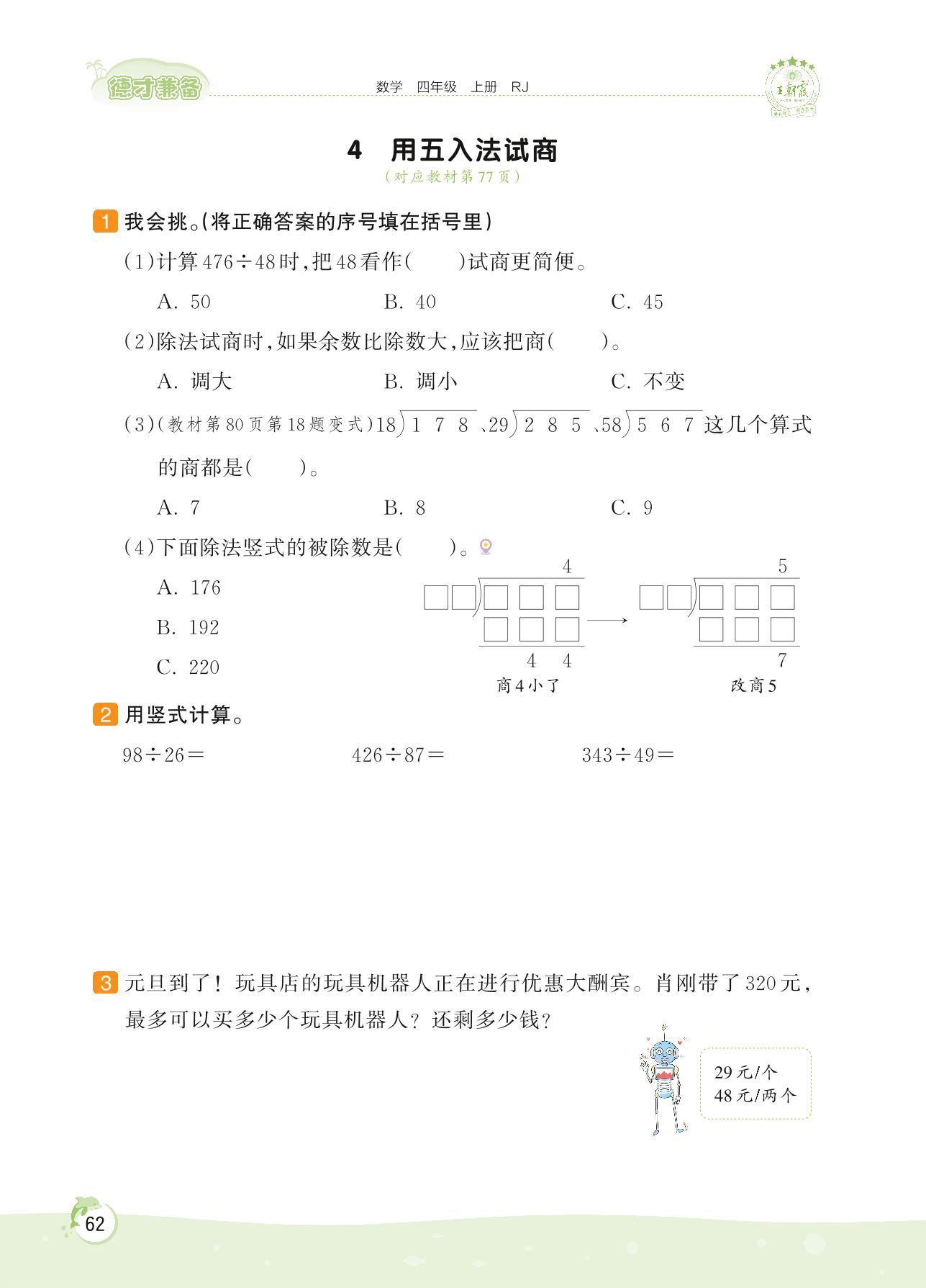 2022上册四年级数学人教版 第六单元 除数是两位数的除法——4 用五入法试商