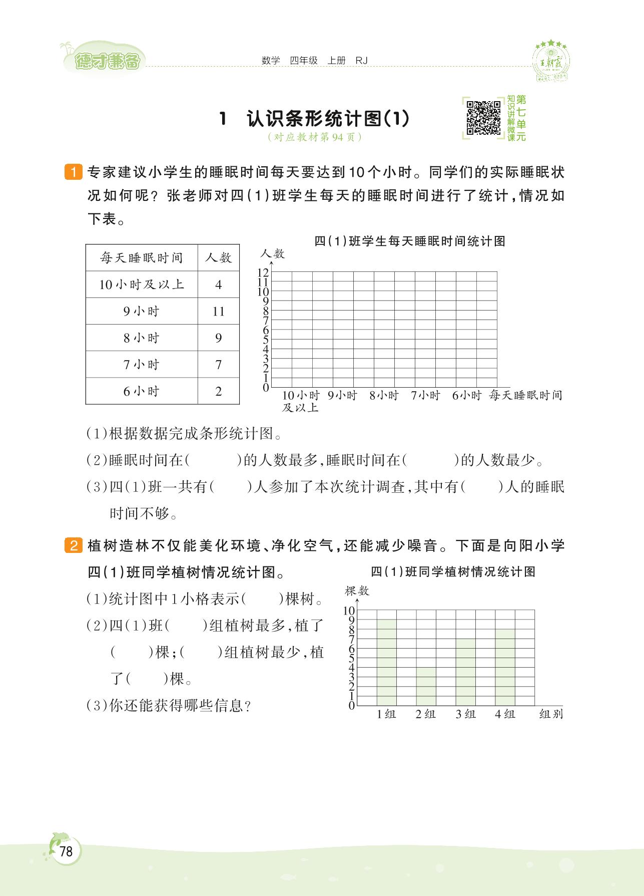 2022上册四年级数学人教版 第七单元 条形统计图——1 认识条形统计图(1)
