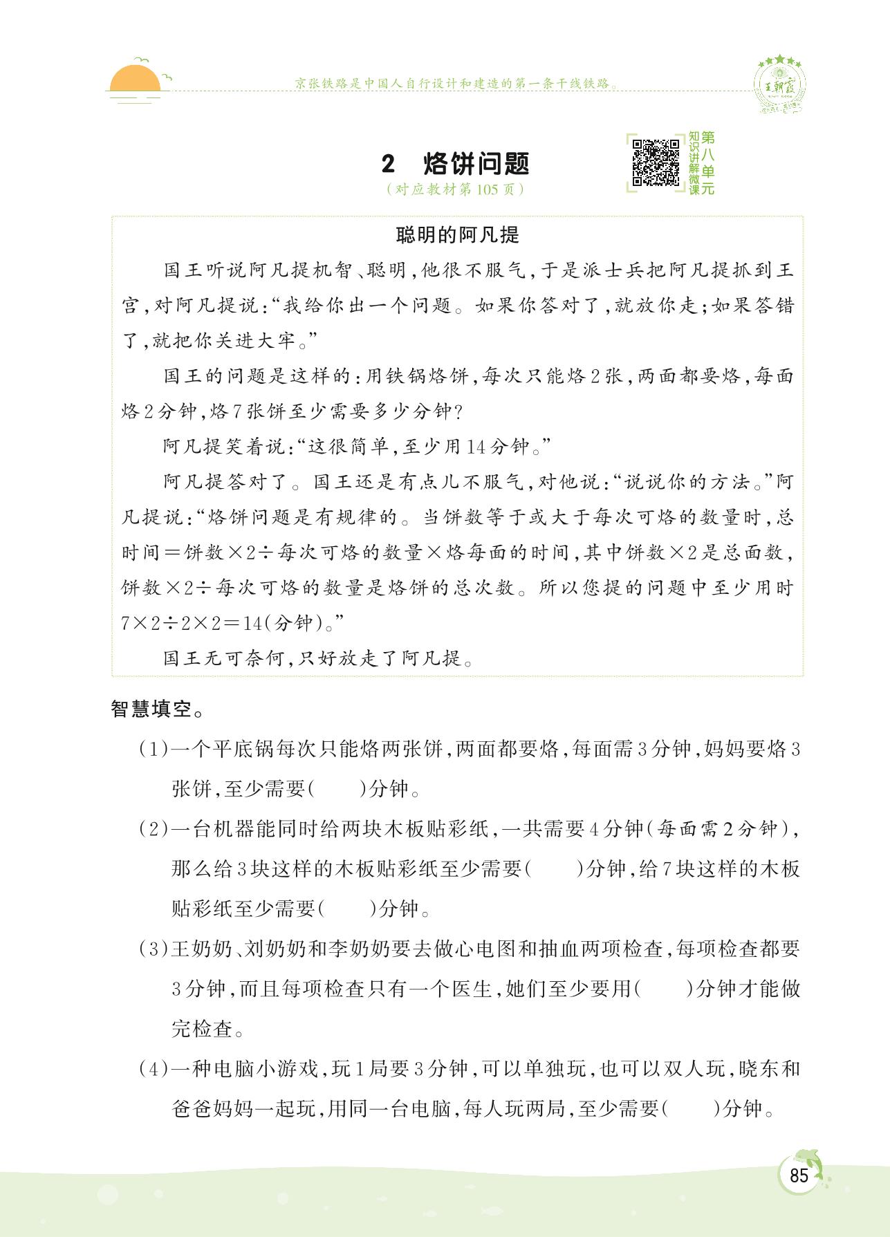 2022上册四年级数学人教版 第八单元 数学广角——优化——2 烙饼问题