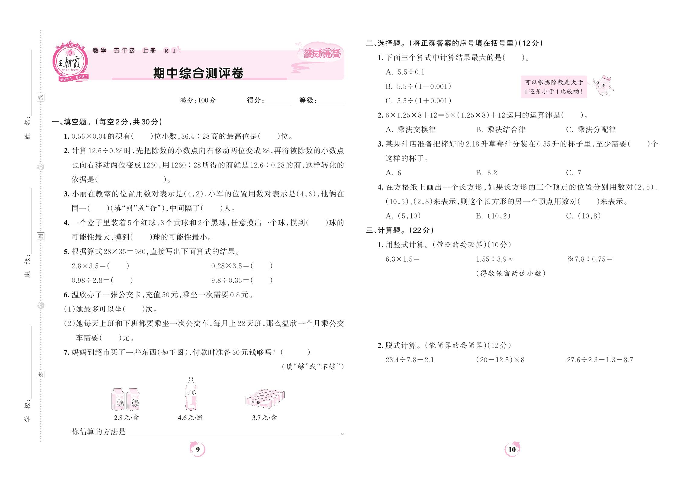 2022上册五年级数学人教版 期中综合测评卷