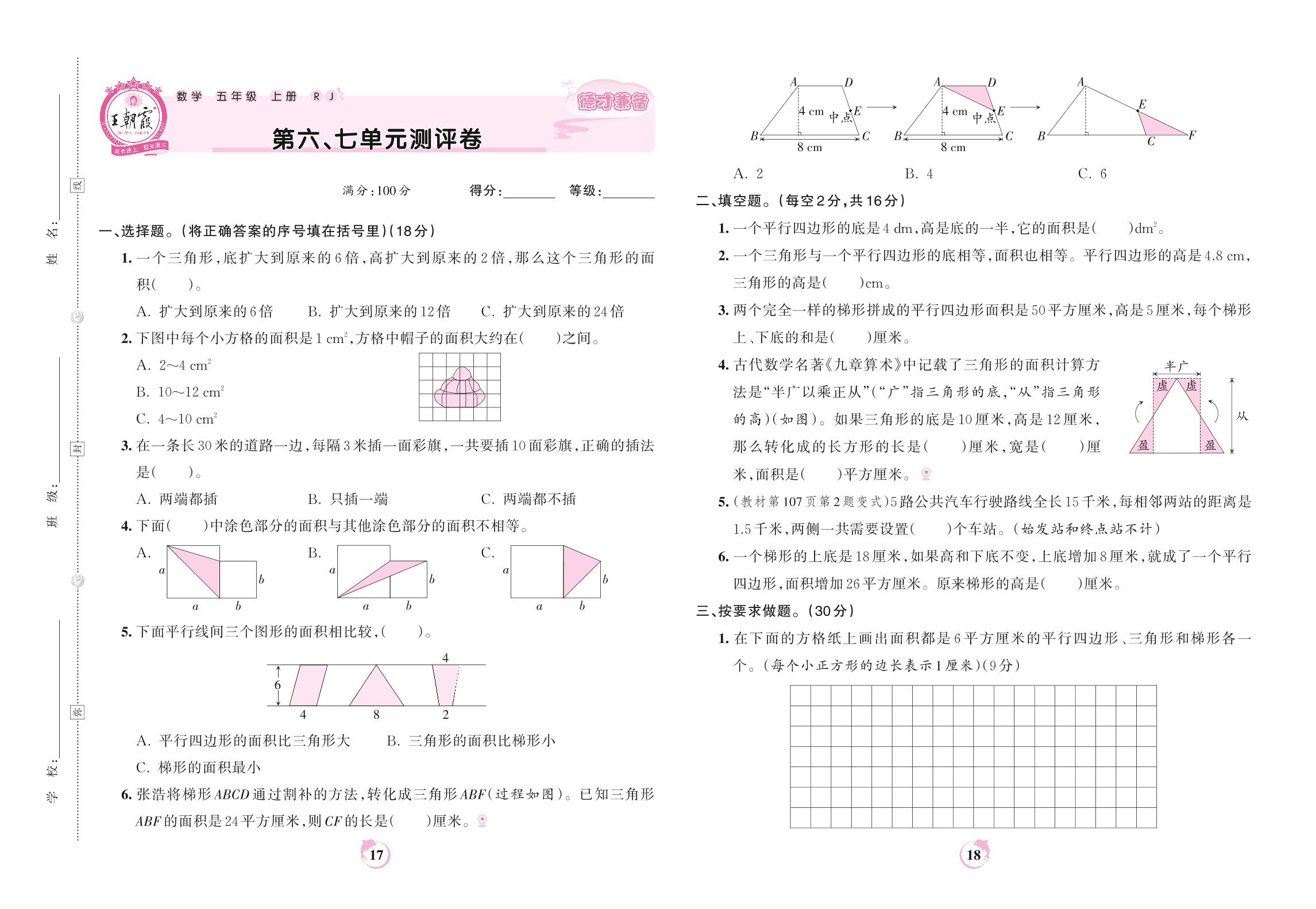 2022上册五年级数学人教版 第六、七单元测评卷