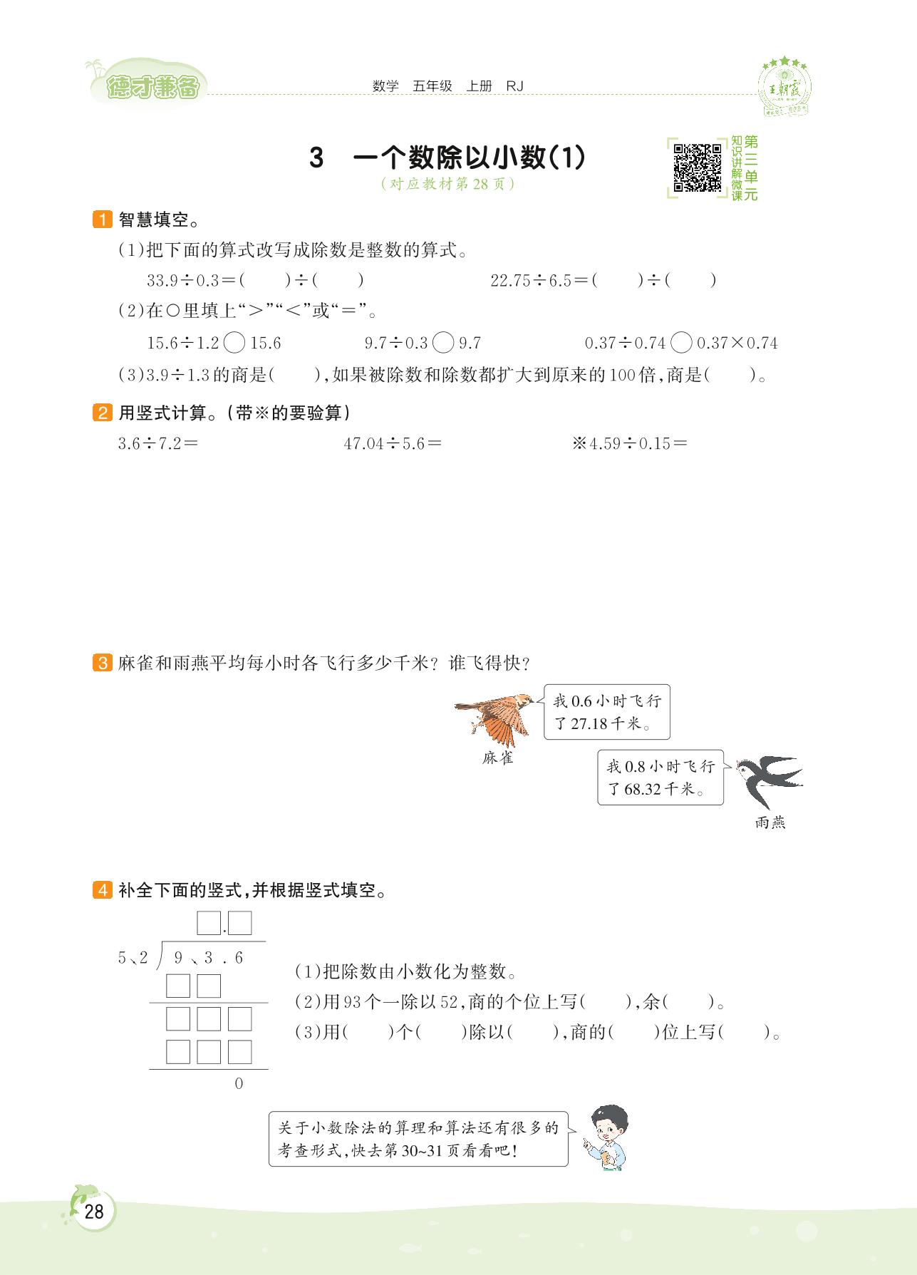 2022上册五年级数学人教版 第三单元 小数除法——3 一个数除以小数(1)