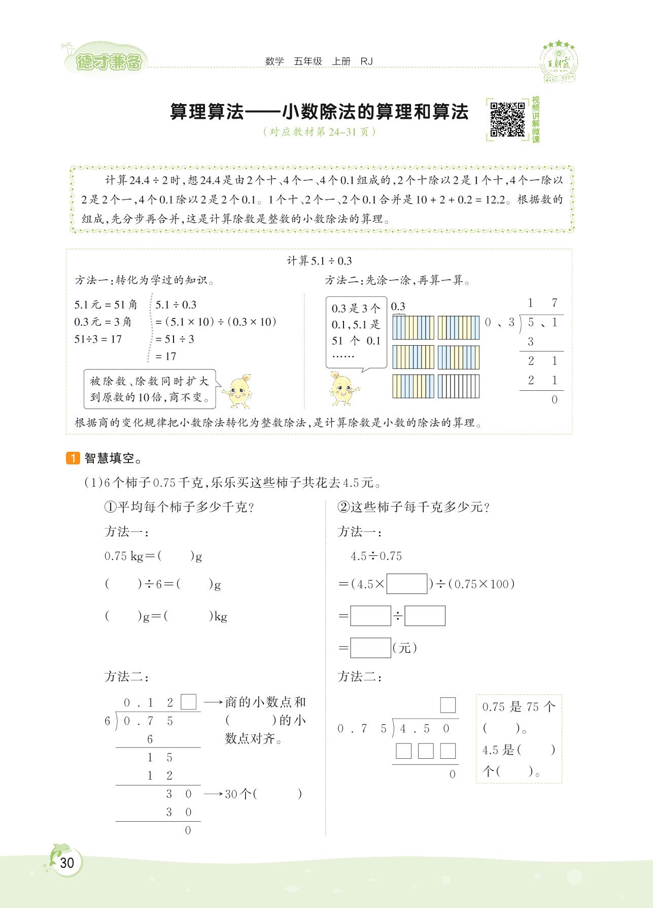 2022上册五年级数学人教版 第三单元 小数除法——算理算法 小数除法的算理和算法