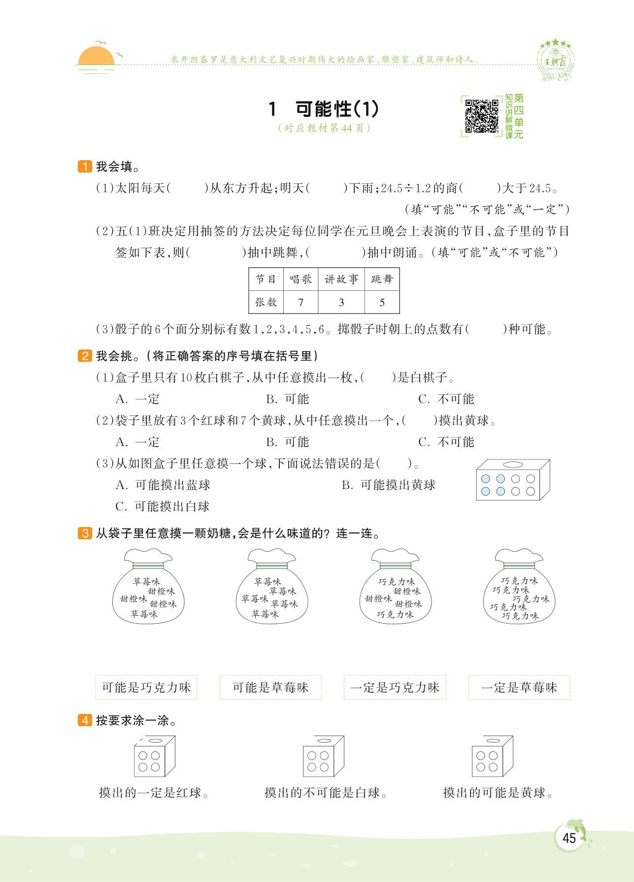 2022上册五年级数学人教版 第四单元 可能性——1 可能性(1)