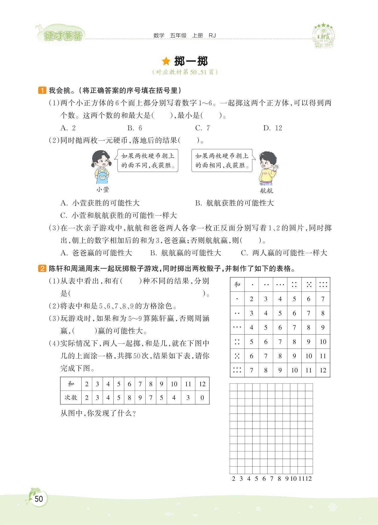 2022上册五年级数学人教版 第四单元 可能性——掷一掷