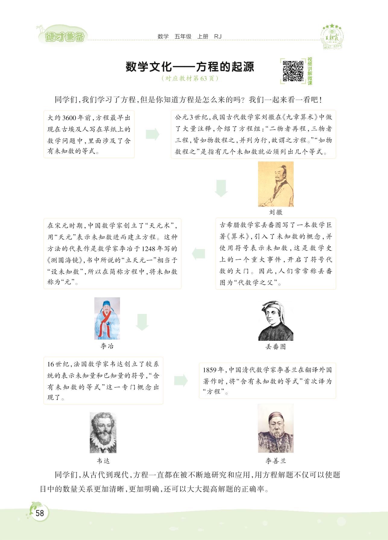 2022上册五年级数学人教版 第五单元 简易方程——数学文化 方程的起源