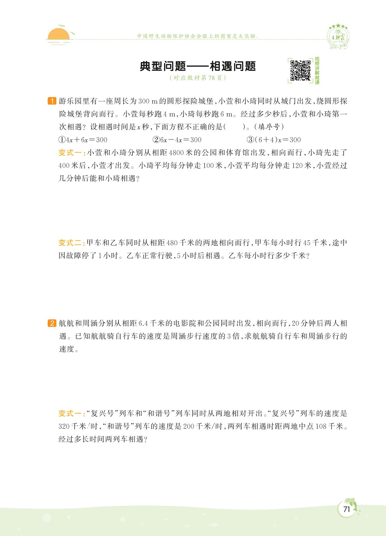 2022上册五年级数学人教版 第五单元 简易方程——典型问题 相遇问题