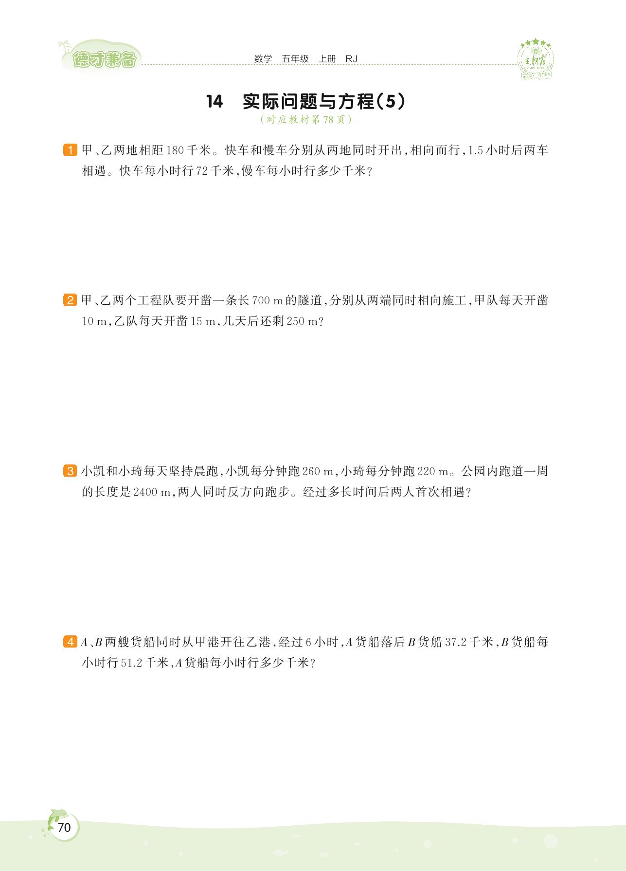 2022上册五年级数学人教版 第五单元 简易方程——14 实际问题与方程(5)