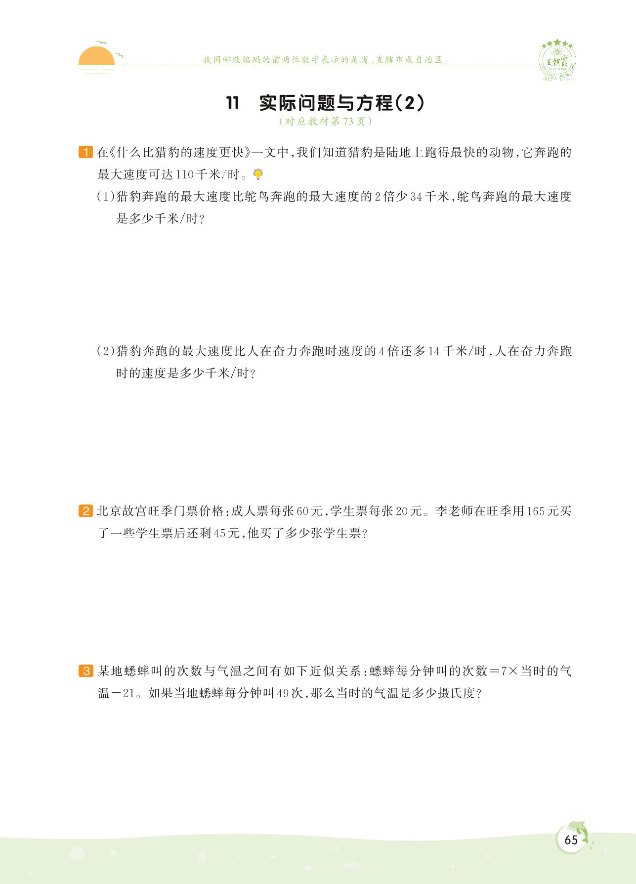 2022上册五年级数学人教版 第五单元 简易方程——11 实际问题与方程(2)