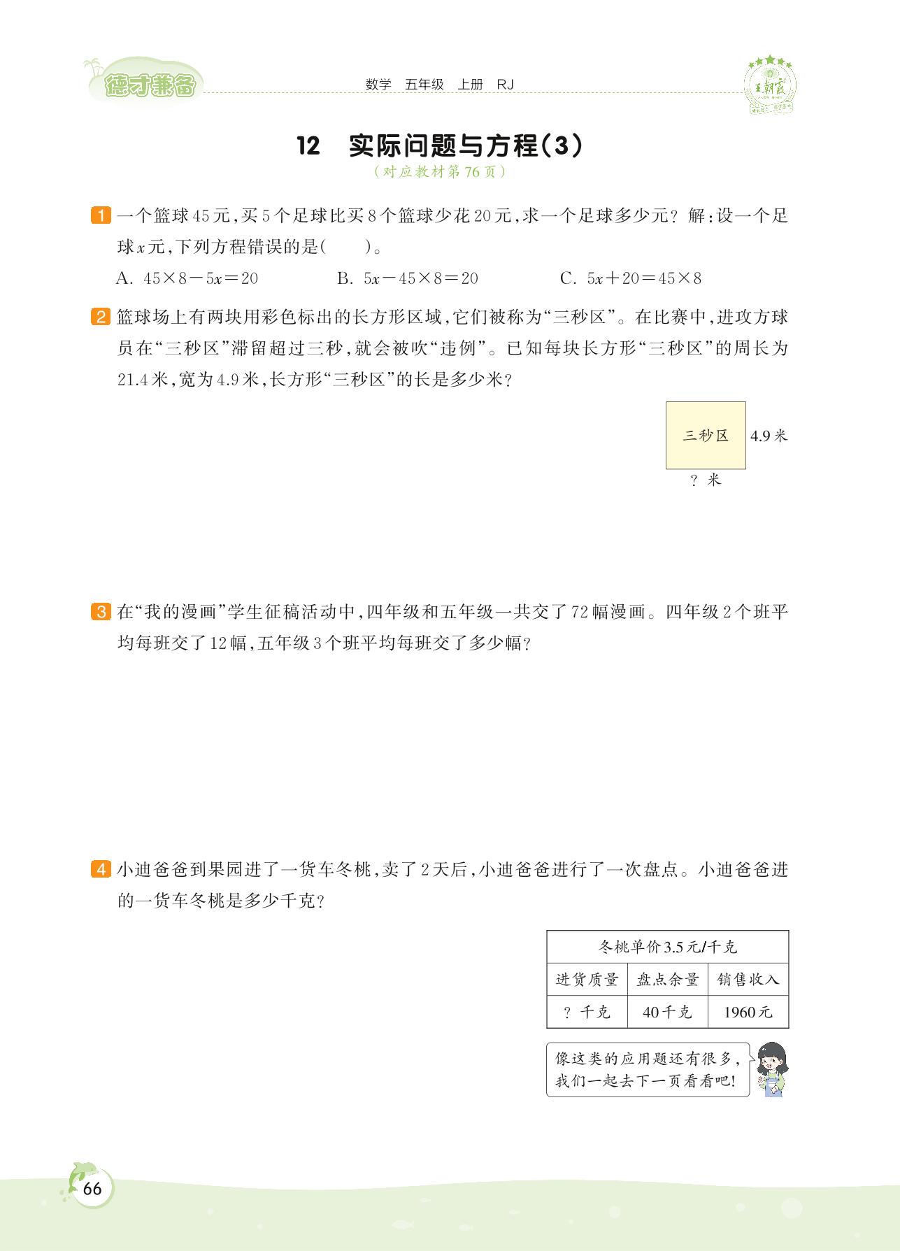 2022上册五年级数学人教版 第五单元 简易方程——12 实际问题与方程(3)