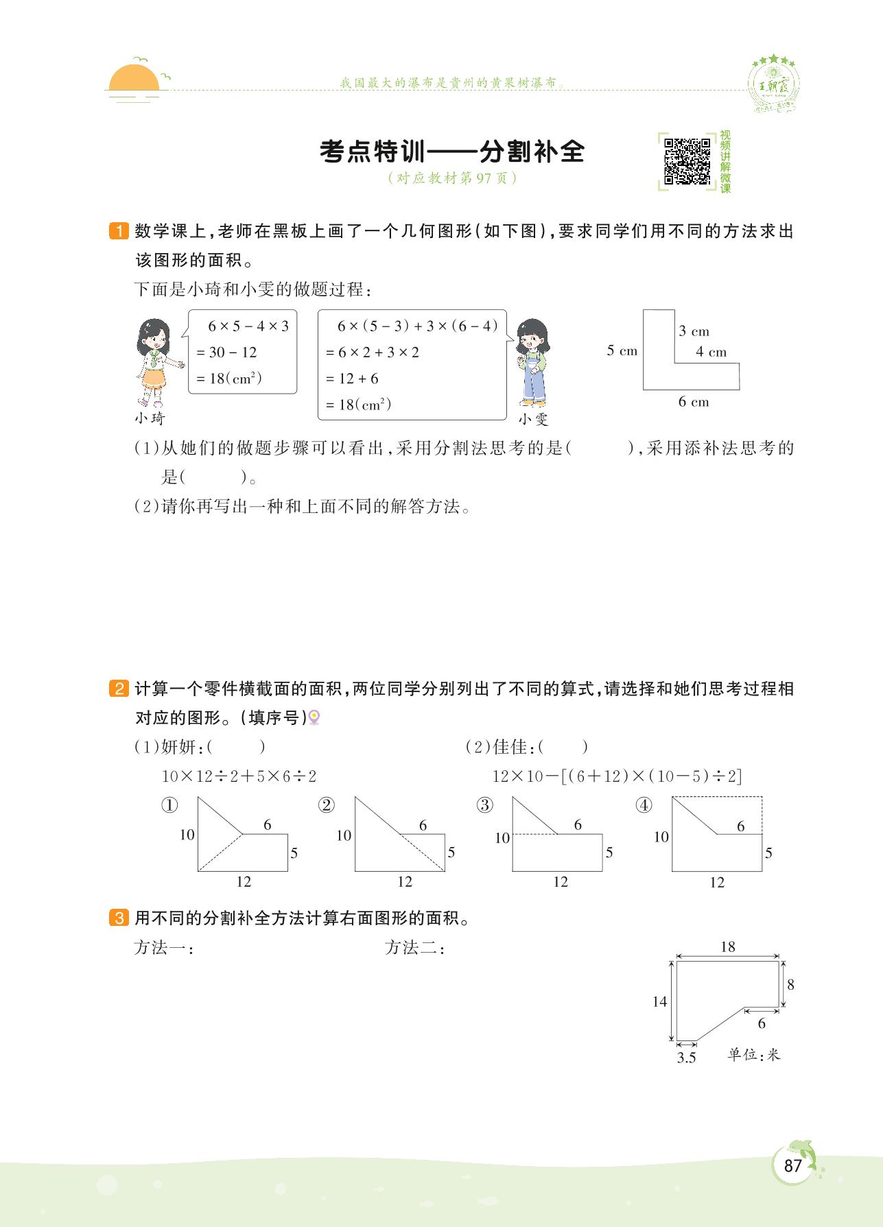 2022上册五年级数学人教版 第六单元 多边形的面积——考点特训 分割补全
