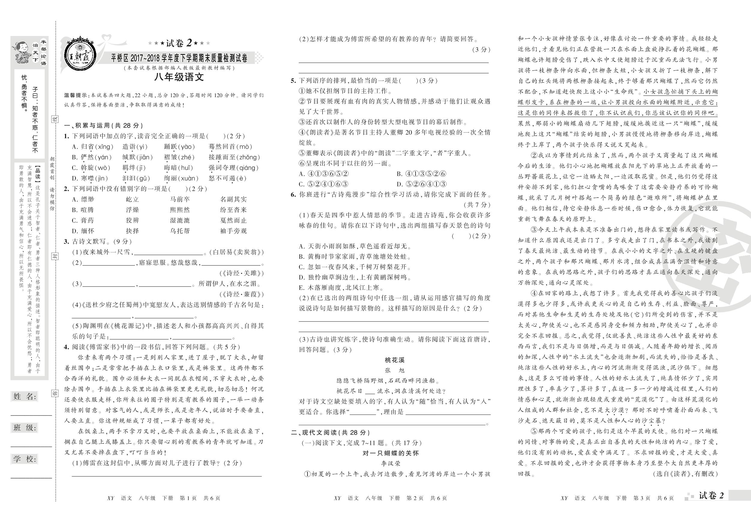 2017-2018学年第二学期信阳市平桥区八年级语文试卷(人教版)【2】